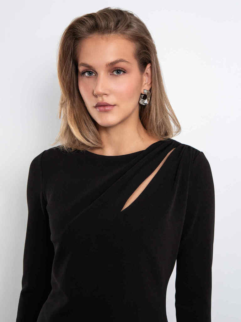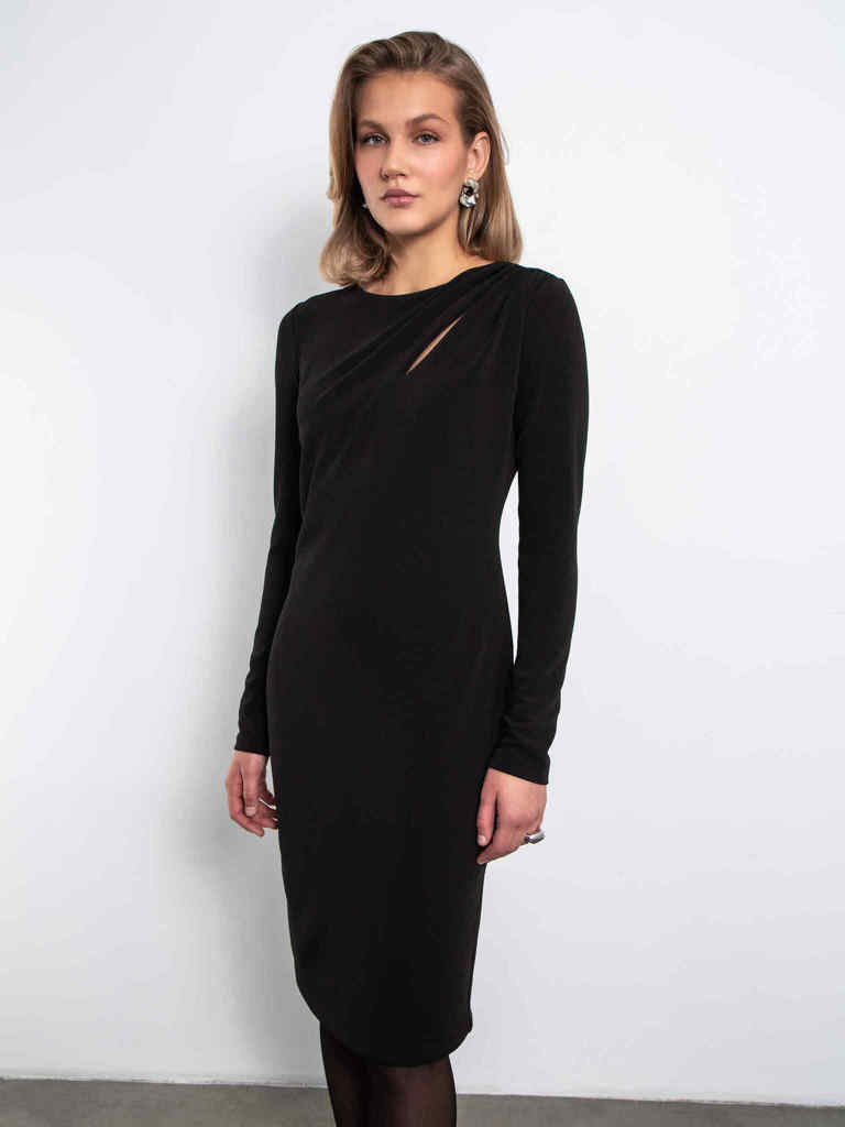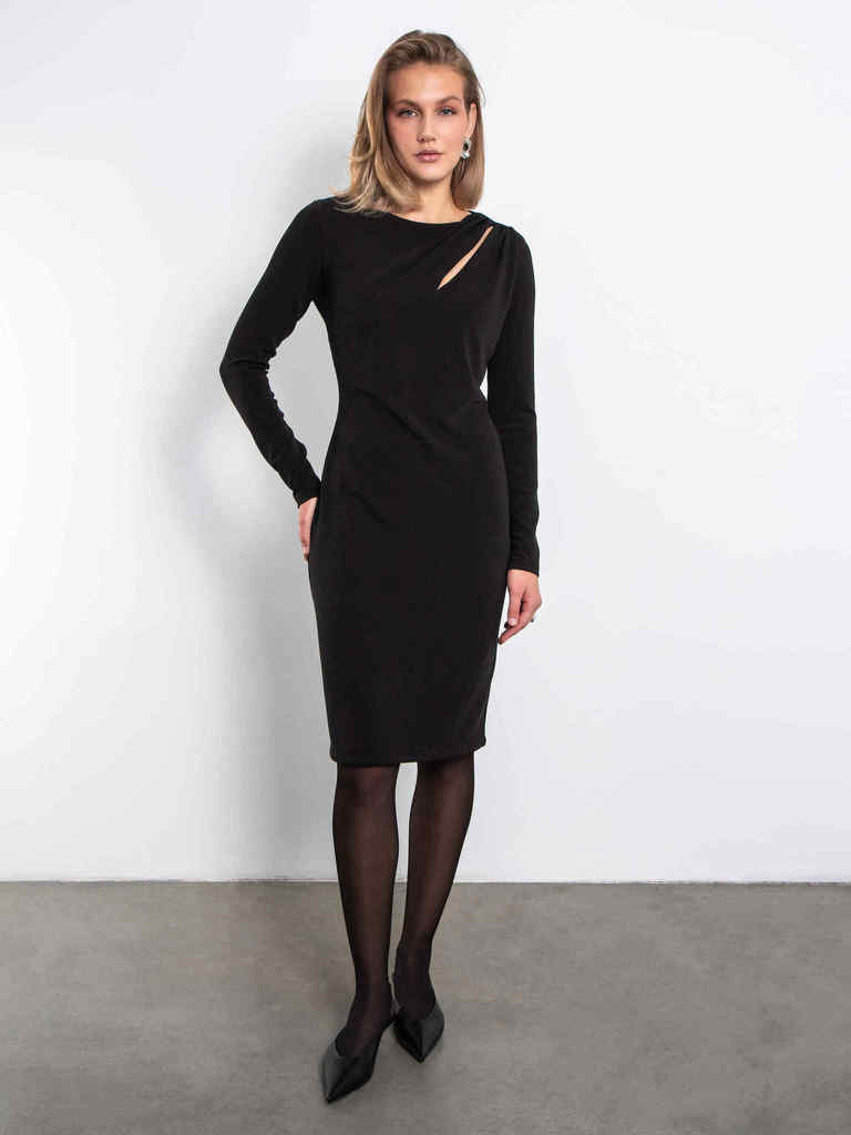 Платье с разрезом от плеча (черное)