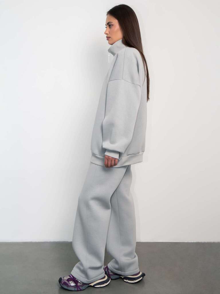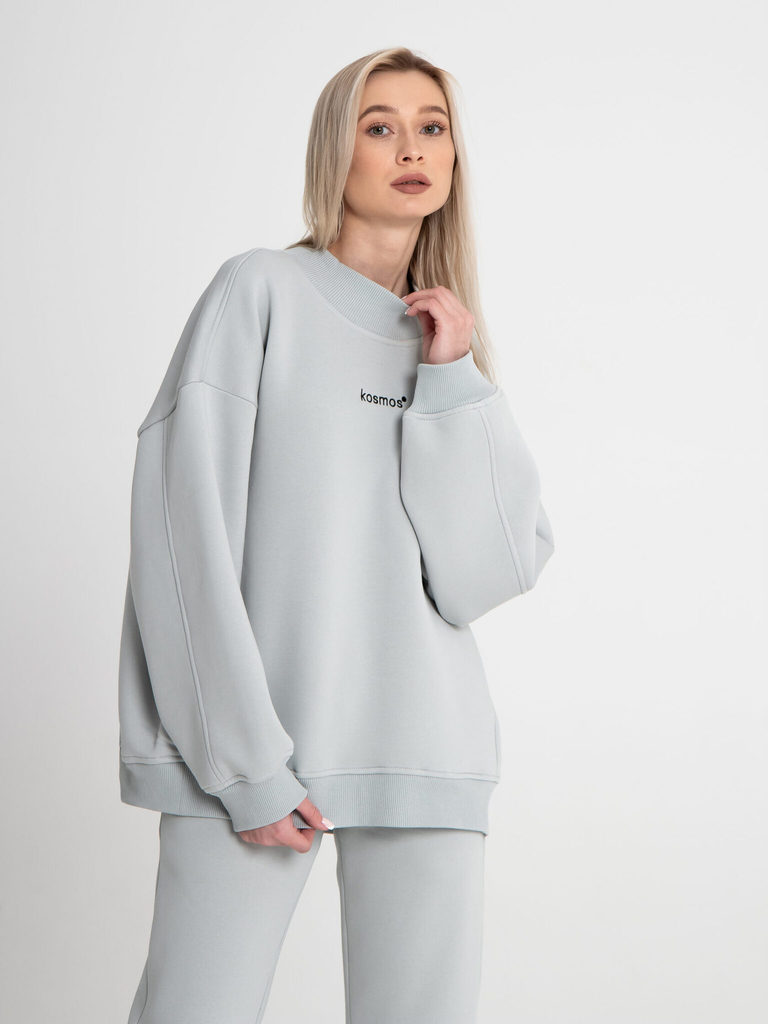 Свитшот женский оверсайз с начесом светло серый
