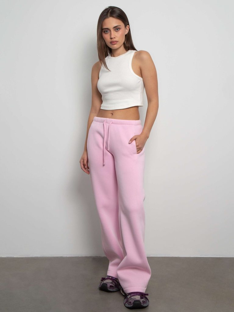 Брюки джоггеры женские розовые с начесом