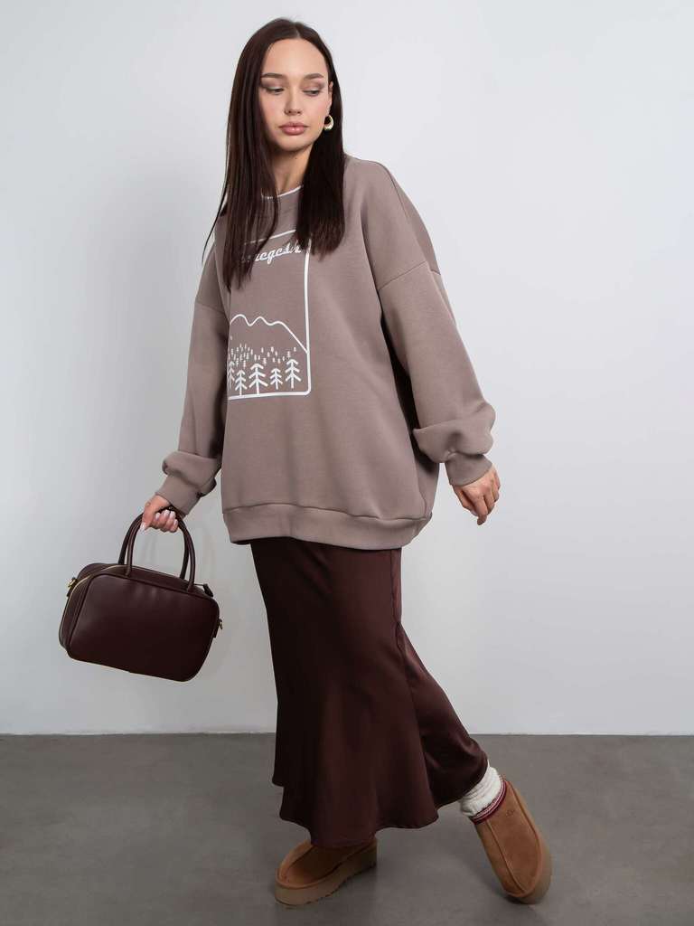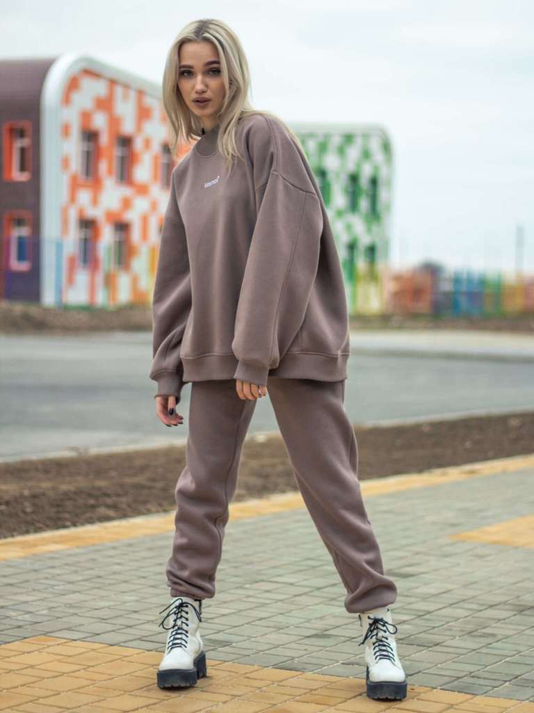 Свитшот женский оверсайз с начесом нюд