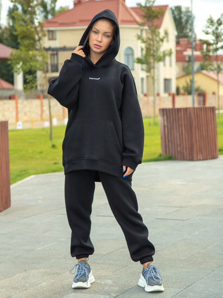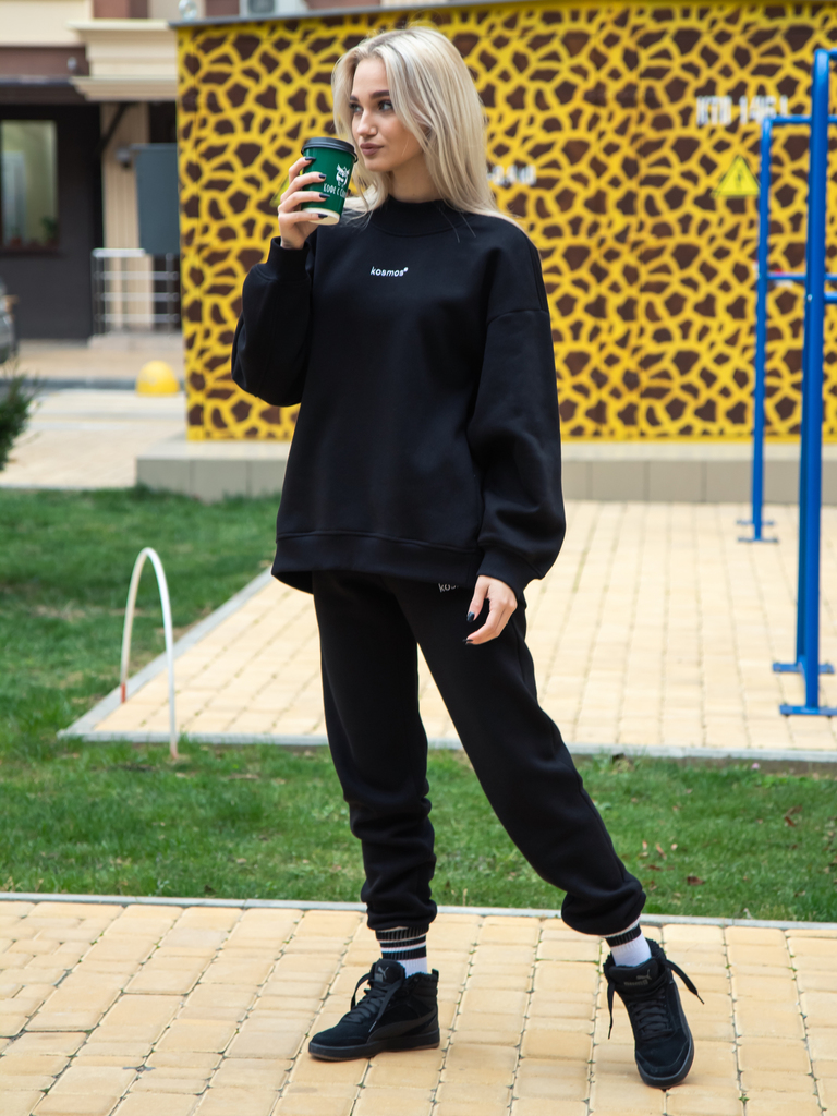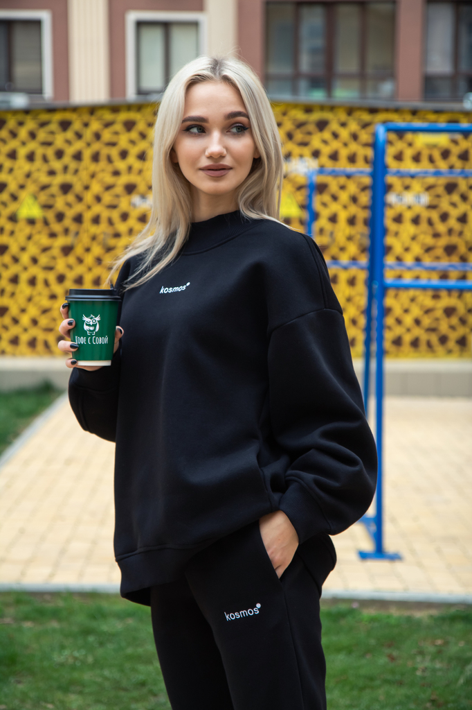 Свитшот женский оверсайз с начесом черный
