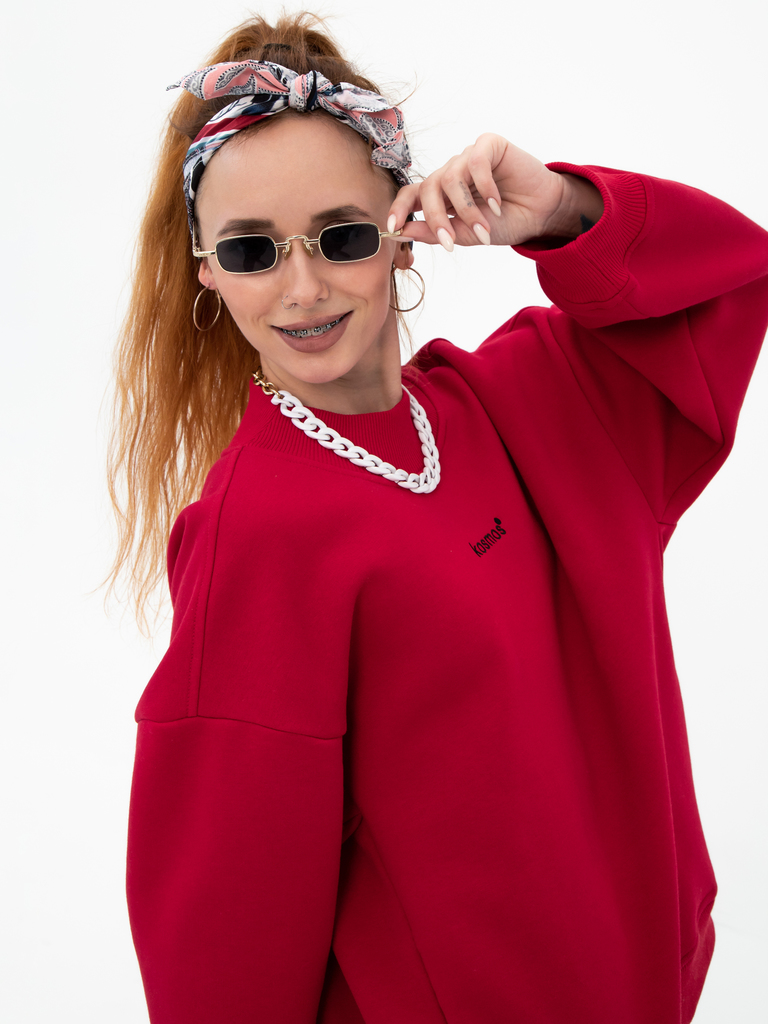 Свитшот женский оверсайз с начесом красныйСвитшот женский оверсайз с начесом красныйСвитшот женский оверсайз с начесом красный