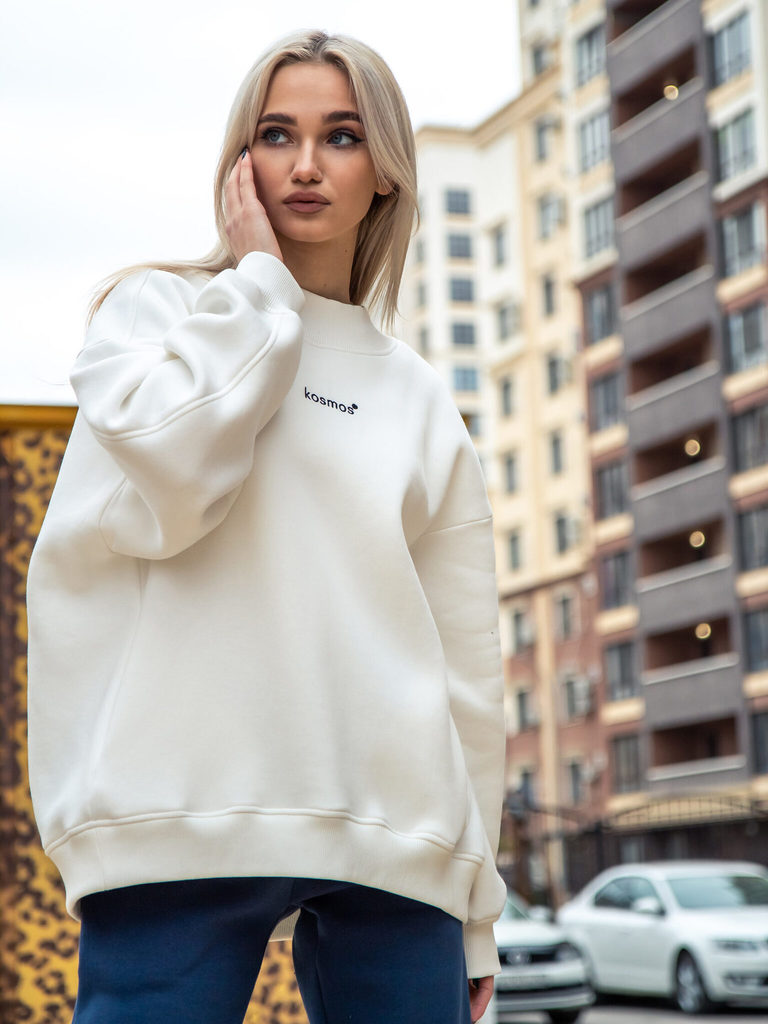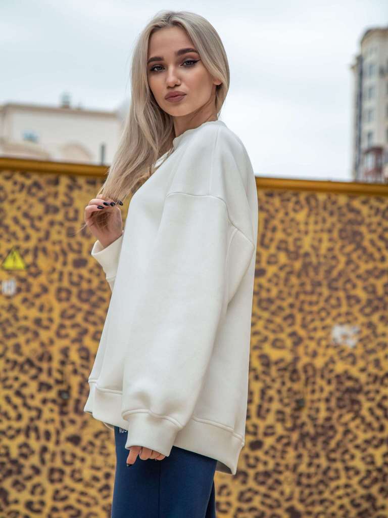 Свитшот женский оверсайз с начесом молочныйСвитшот женский оверсайз с начесом молочныйСвитшот женский оверсайз с начесом молочный