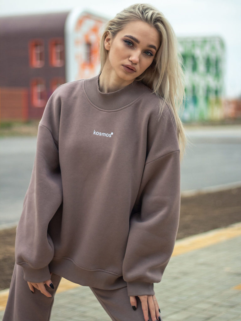 Свитшот женский оверсайз с начесом нюдСвитшот женский оверсайз с начесом нюд