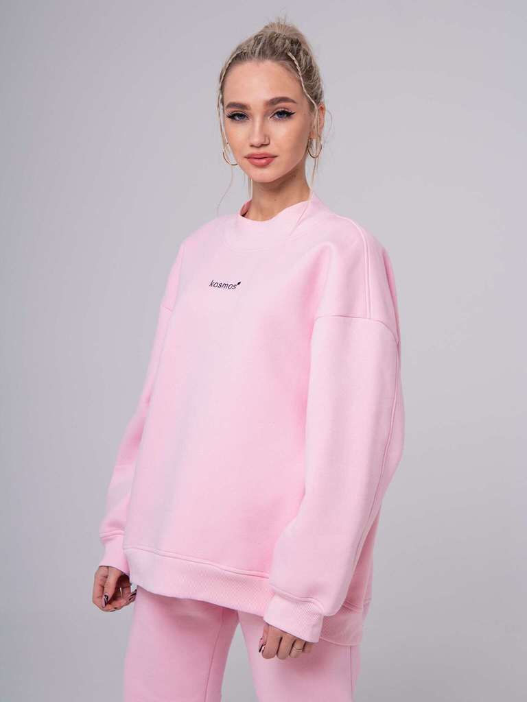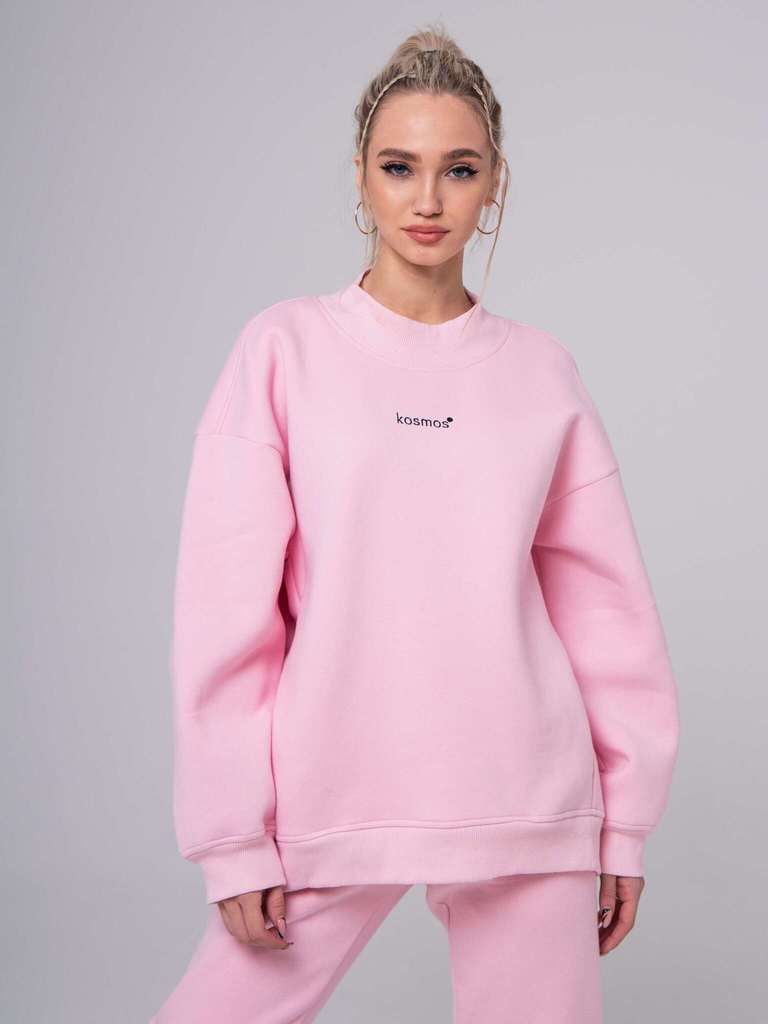 Свитшот женский оверсайз с начесом розовый