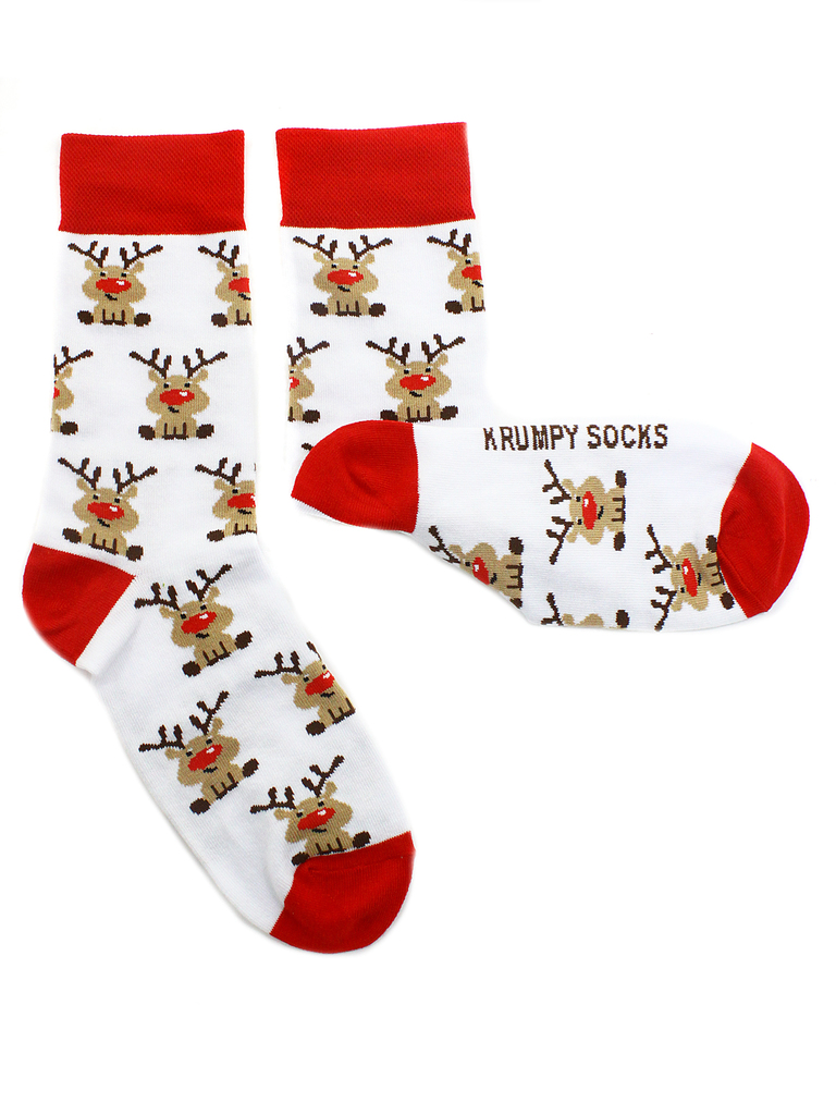 Носки Новогодние р.40-45 "Wow" Олень на белом с красным носом "Ничего себе дизайн" - скажите вы увидев нашу новую серию носочков В серии собраны носки с принтами оленя, санты, ёлок, снижинок, печенек ... Показать описаниеи всей остальной новогодней тематикой Уникальные принты, интересные сюжеты прям на носках. Принт: оленя с красным носом Цвет носка : белый Красные вставки на резинке, мыске и пятке Надпись Krumpy Socks на стопе носка Отличный состав, мягкий гребенный хлопок. Мягкая резинка отлично держится на ногах при этом не передавливая ноги Всесезонные.