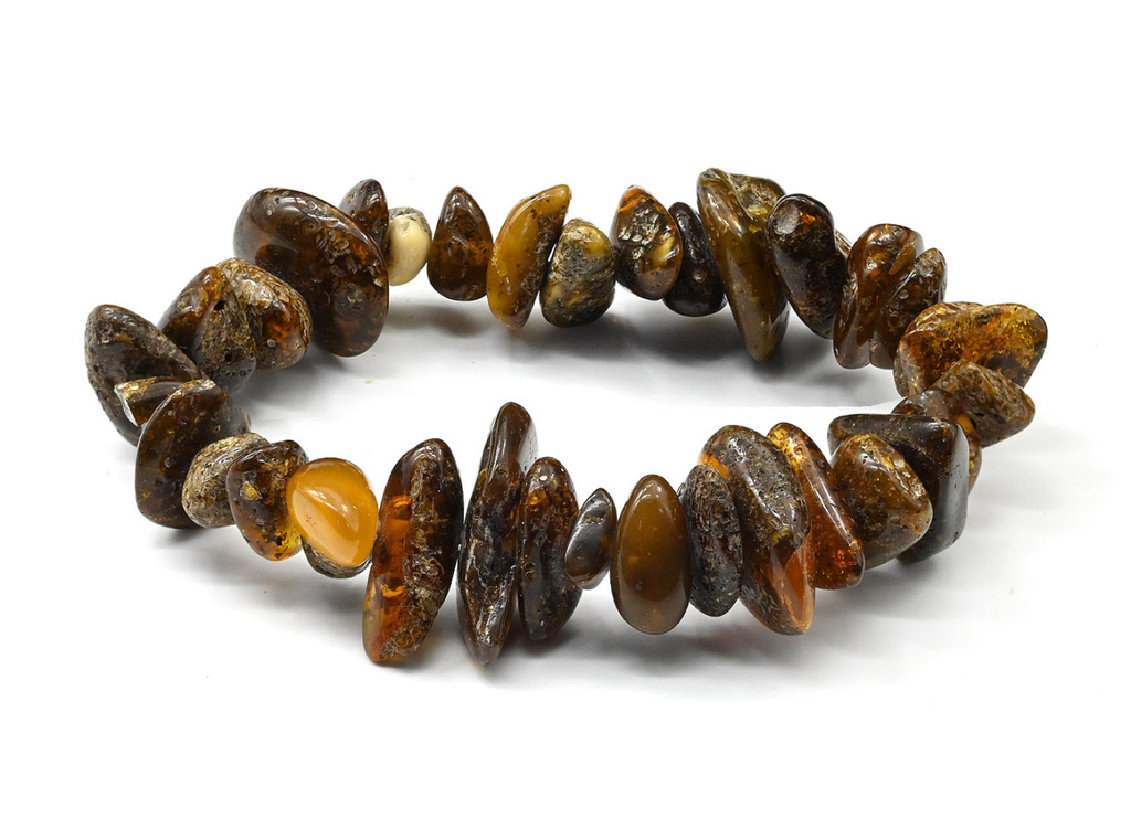 Браслет из необработанного янтаря 2шт цвет коньячный, 18смВопросы по товару