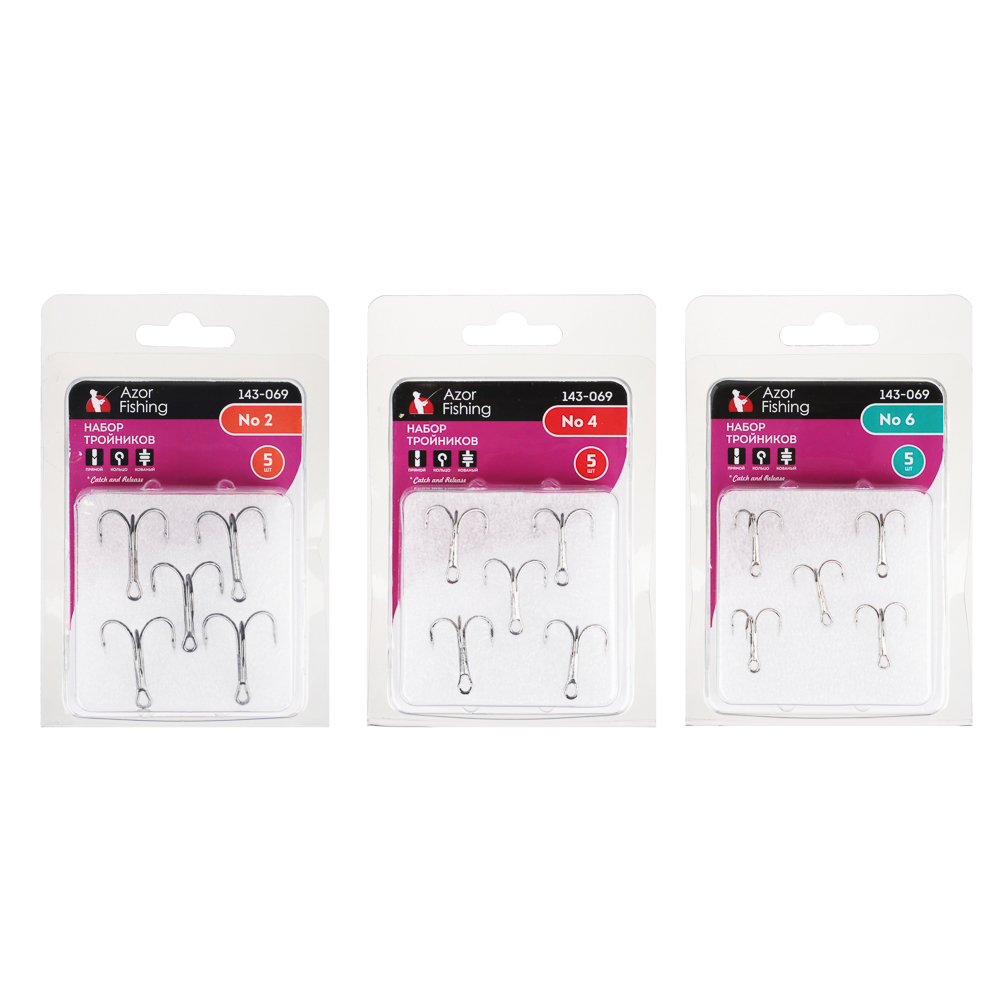 AZOR FISHING Набор тройников 5шт, №1, 2 , 4, 6, 8 высокоуглеродистая сталь