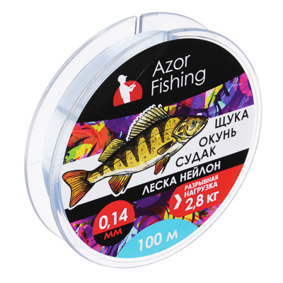 AZOR FISHING Леска "Щука,Окунь, Судак", нейлон, 100м, 0,14мм, 2,8кг, светло-голубая