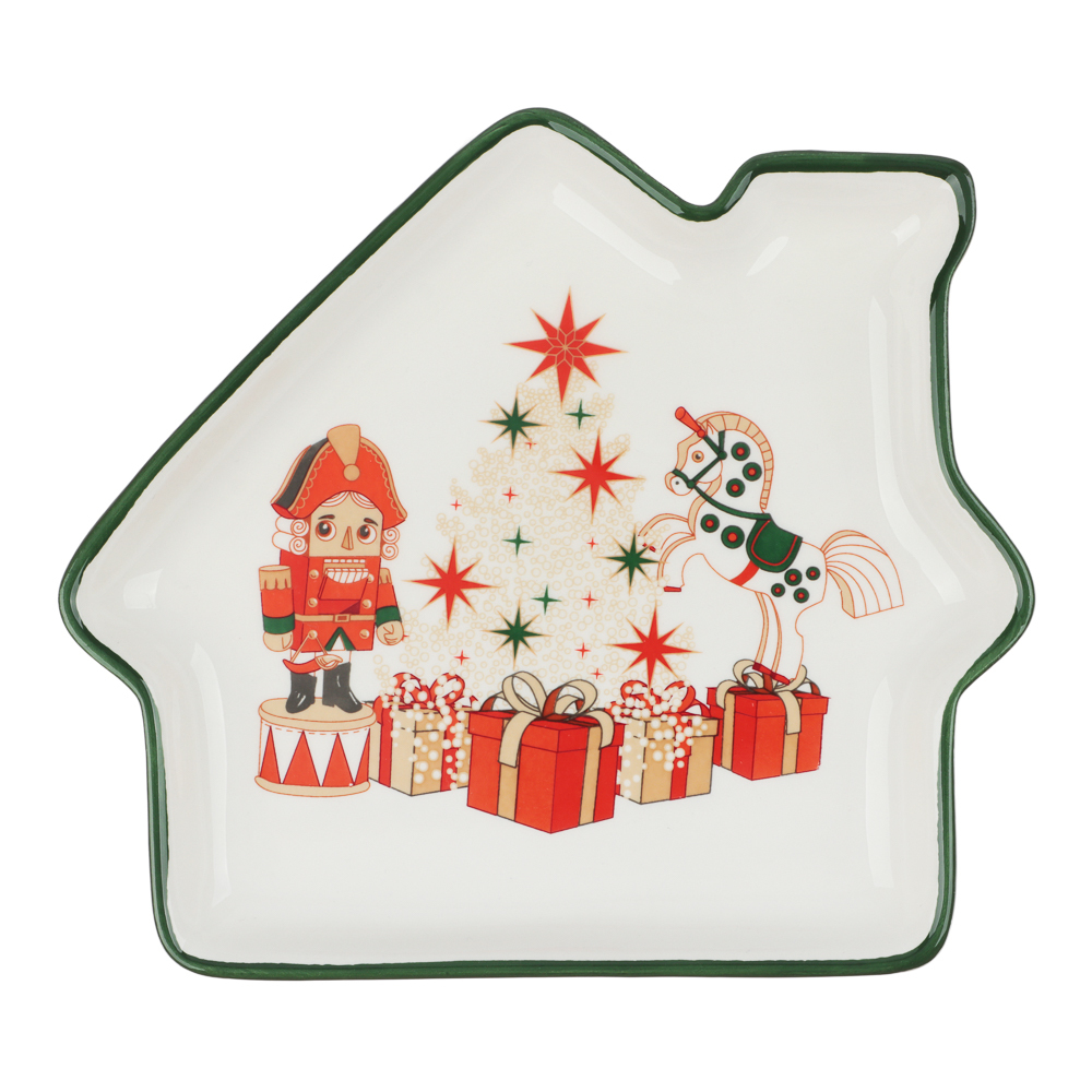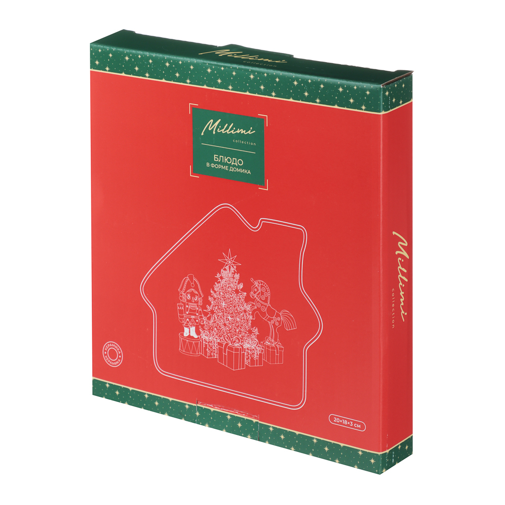 Блюдо в форме домика MILLIMI Щелкунчик, 20х18х3 см, из керамики предназначено специально для сервировки новогоднего стола. Тематическое оформление обозначит повод для торжества, создаст яркий акцент и... Показать описание сделает подачу блюд эффектной и выразительной. Блюдо подходит для подачи закусок, канапе, десертов, орехов, сыра и фруктов. Образует единый стиль в сочетании с посудой из одноименной коллекции и в то же время легко комбинируется с керамической посудой из других коллекций. Легко моется, не тускнеет, не трескается и не образует сколов при аккуратном использовании. Может стать приятным подарком на Новый год.