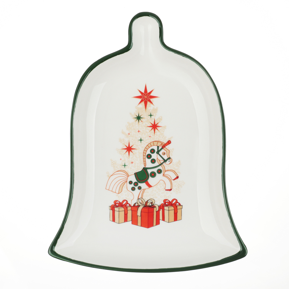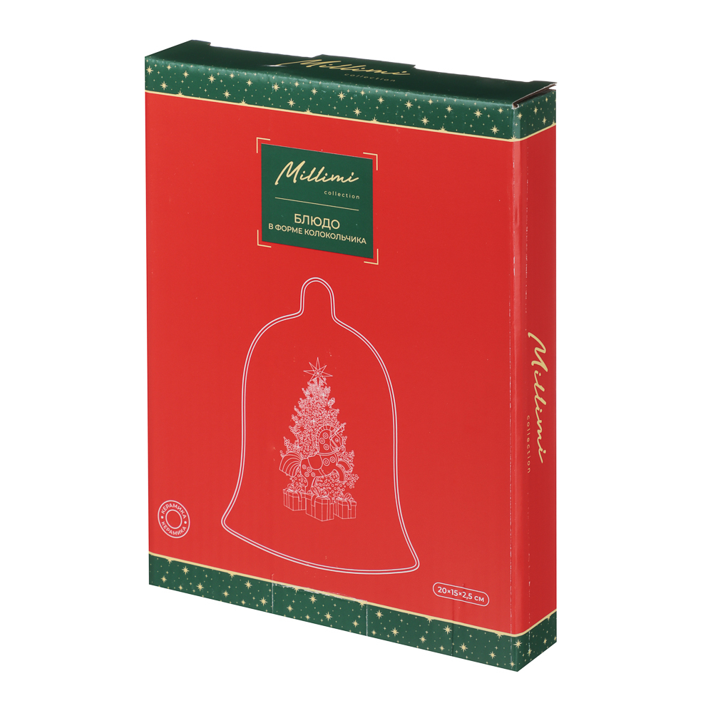 Блюдо в форме колокольчика MILLIMI «Щелкунчик», 20х15х2,5 см, из керамики с тематическим принтом станет изюминкой рождественской или новогодней сервировки. Подходит для подачи праздничных закусок, нар... Показать описаниеезок и десертов. Блюдо создаст выразительный акцент на праздничном столе, легко комбинируется с посудой из разных коллекций, а также со столовыми приборами и текстильными элементами сервировки различных стилей и оттенков. Прочная керамика устойчива к образованию сколов, подходит для мытья в посудомоечной машине.