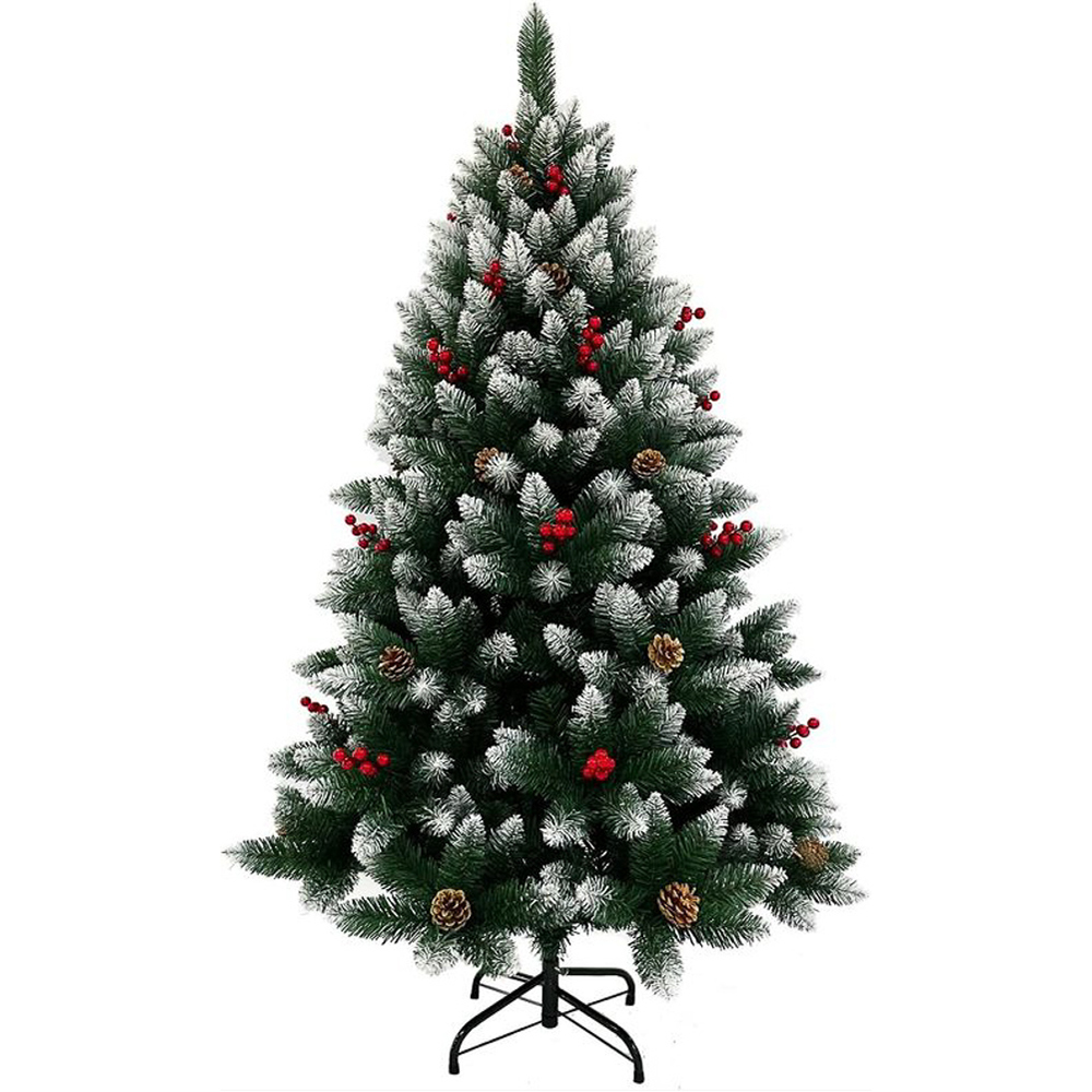 Ель искусственная с заснеженными кончиками, шишками и рябиной 150см, 420 веток, ПВХ