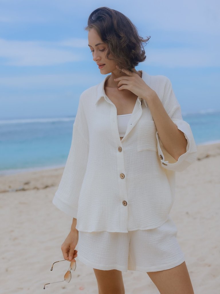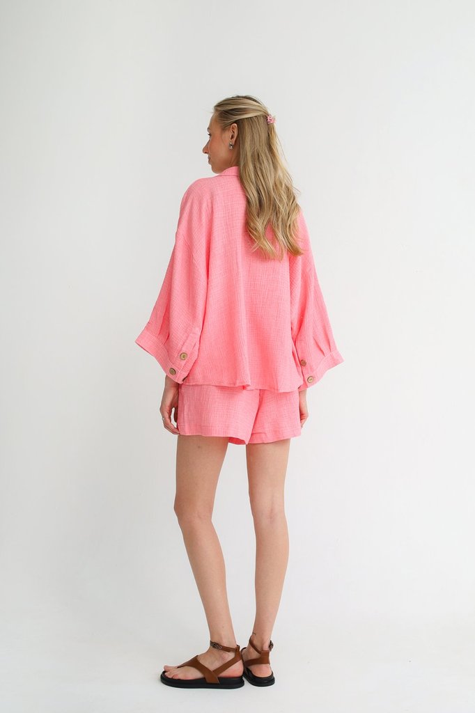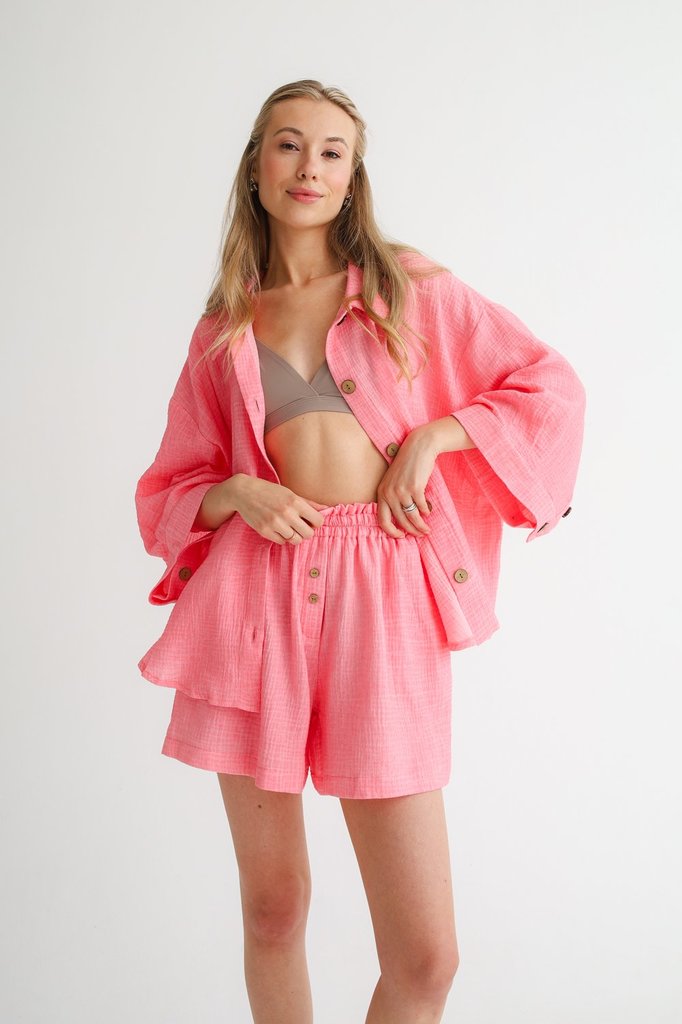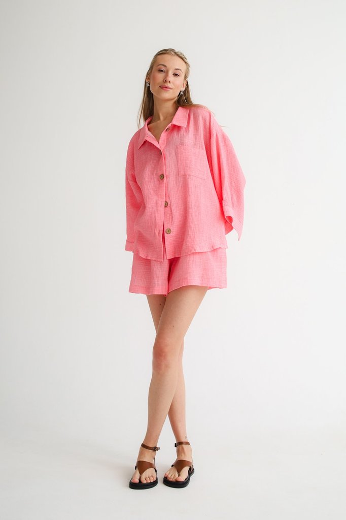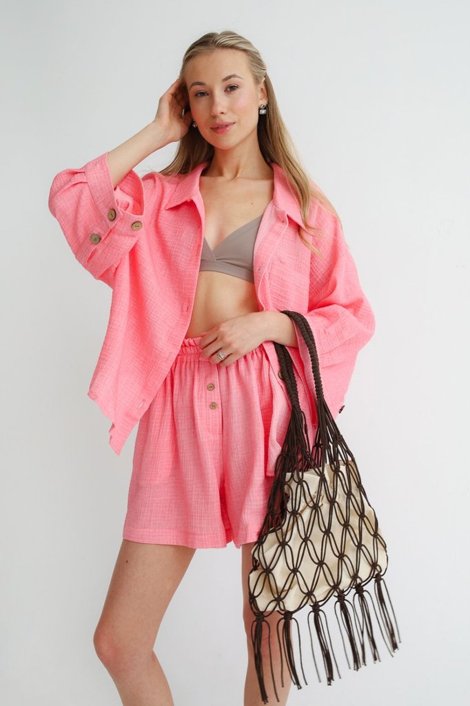 Рубашка объемная с карманом на полочке. Отложной воротник. Шорты на широкой резинке. Карманы в боковых швах
