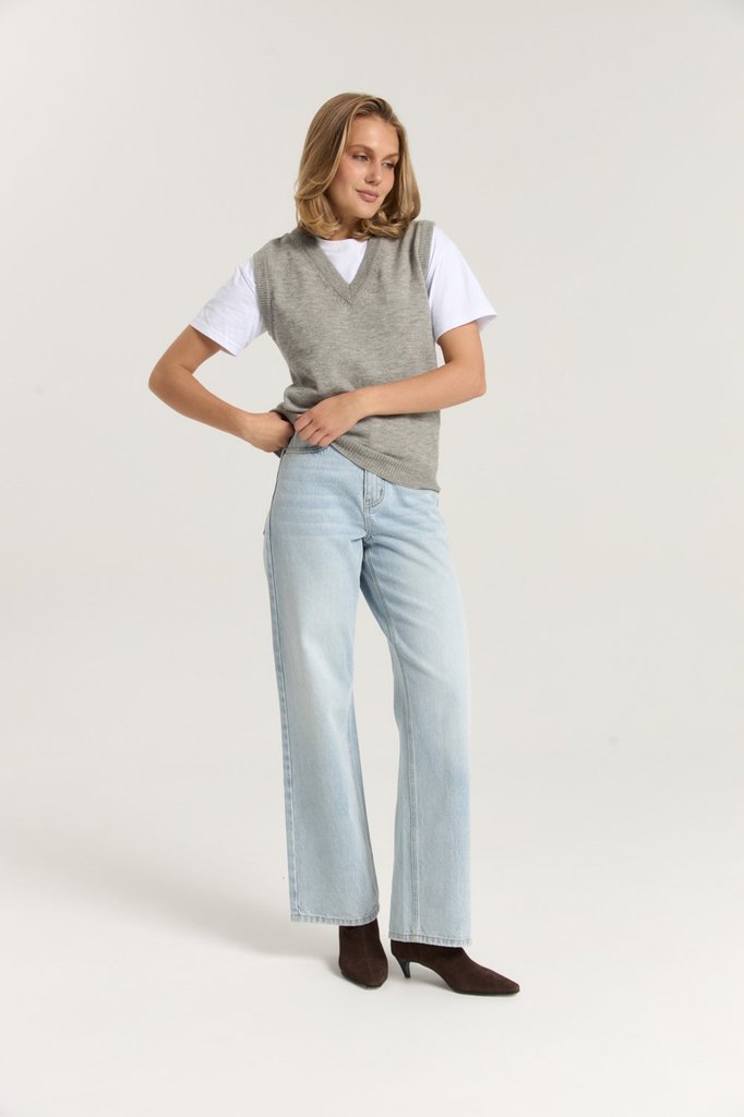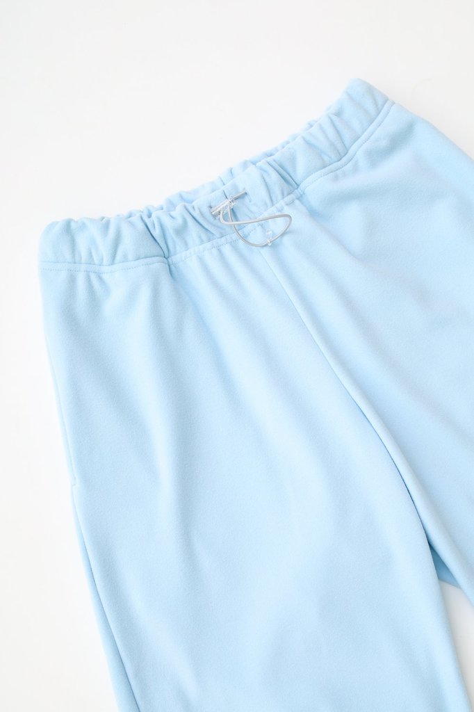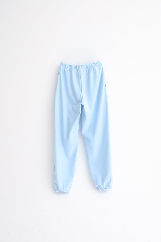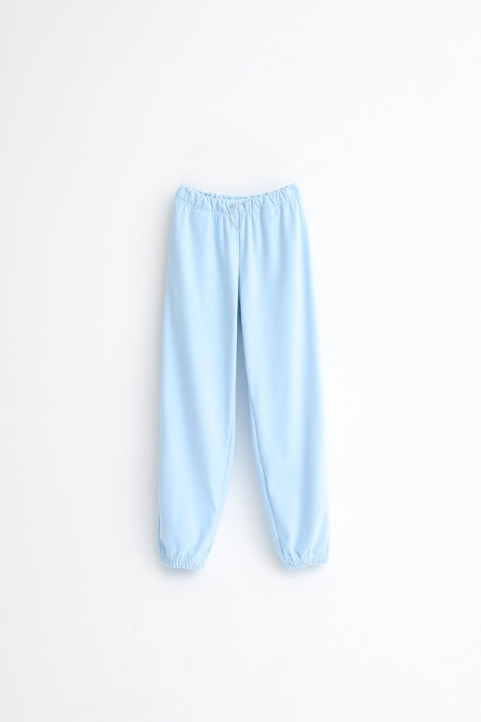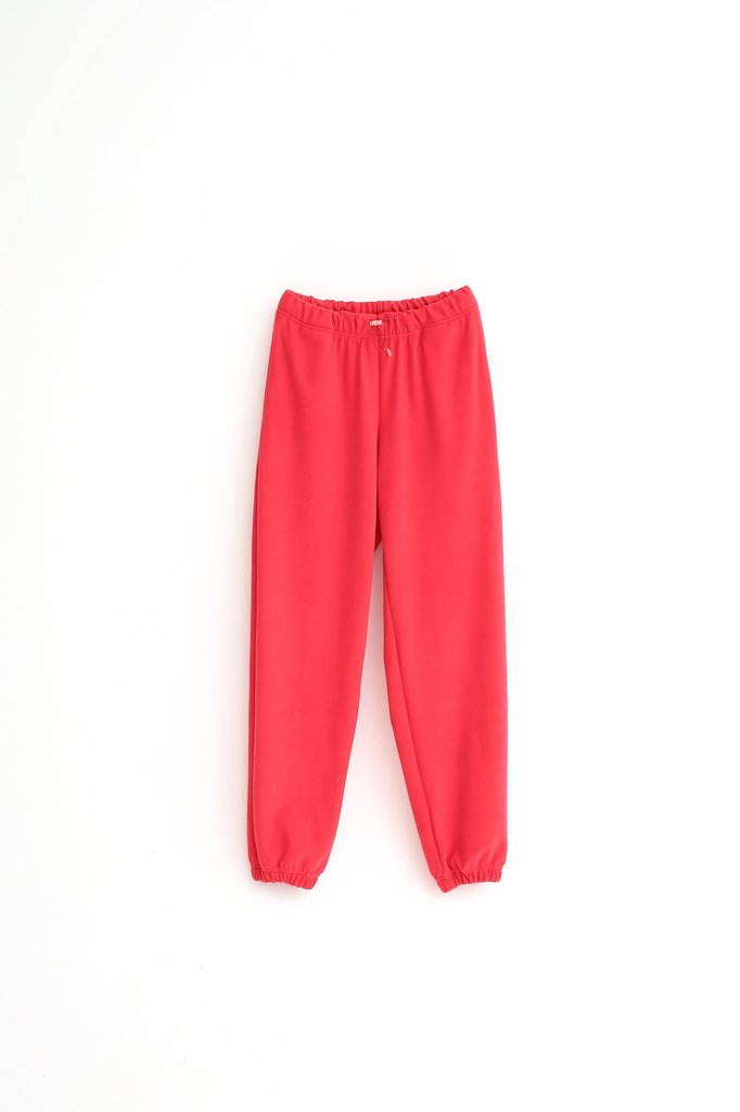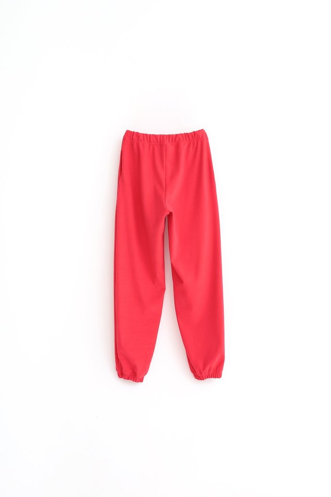 Брюки-трубы. Пояс отрезной на узкой резинке. Два  кармана с косым входом по бокам.