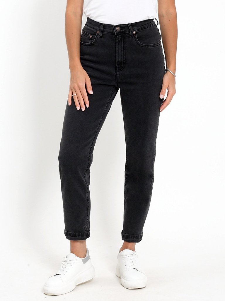 Цвет: стирка темная Состав: 99%Хлопок, 1%Эластан Материал: Black denim 006 str. Вес материала: 12.7 Фит: Mom fit Талия спереди: высокая Талия сзади: высокая Ширина колена: 20,5см Ширина низа: 16см ID:... Показать описание 246011 Описание Женские классические ретро джинсы с пятью карманами с использованием лучших традиций 90-х. Посадка Mom fit, высокая талия спереди и сзади, свободные в бедре и зауженные к низу укороченной длины. Застежка на молнии.  Выполнены из слабоэластичной ткани denim comfort stretch, цвет ткани Black/Black (лицевая и изнаночная стороны ткани черные). Специальная темная стирка  "towel wash", мраморный эффект. Рекомендации по уходу * * * * * Стирать в стиральной машине при температуре 30° Не использовать отбеливатель Ручная стирка при температуре 30° Гладить при минимальной температуре Химчистка недопустима