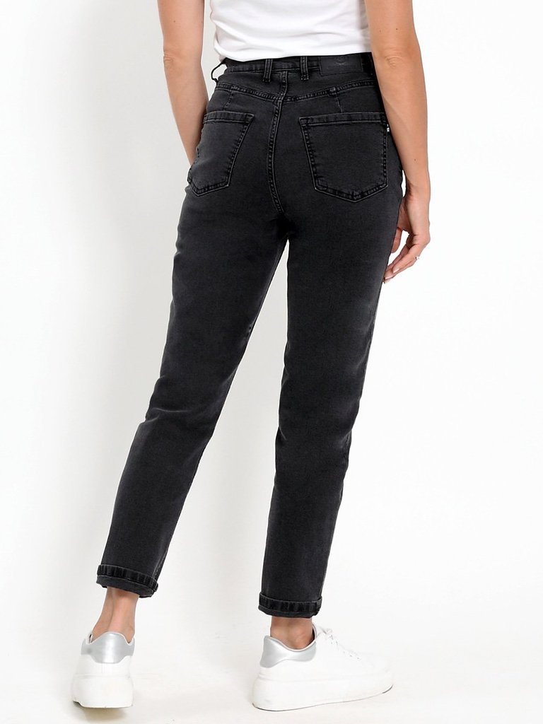 Цвет: стирка темная Состав: 98%Хлопок, 2%Эластан Материал: Blue/Black denim 010 str. Вес материала: 12.1 Фит: Mom fit Талия спереди: высокая Талия сзади: высокая Ширина колена: 21.5см Ширина низа: 16с... Показать описанием ID: 233517 Описание Женские модные джинсы с пятью карманами. Посадка Mom fit (высокая талия), свободные в бедре и зауженные к низу, укороченной длины.  Застежка на молнию. Выполнены из слабоэластичной ткани denim comfort stretch, цвет ткани Blue/Black(лицевая сторона ткани темно-синяя, изнаночная сторона-черная). Темная стирка "stone wash". Рекомендации по уходу * * * * * Стирать в стиральной машине при температуре 30° Не использовать отбеливатель Ручная стирка при температуре 30° Гладить при минимальной температуре Химчистка недопустима