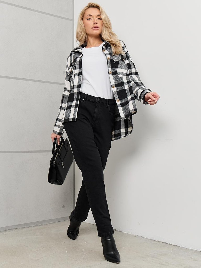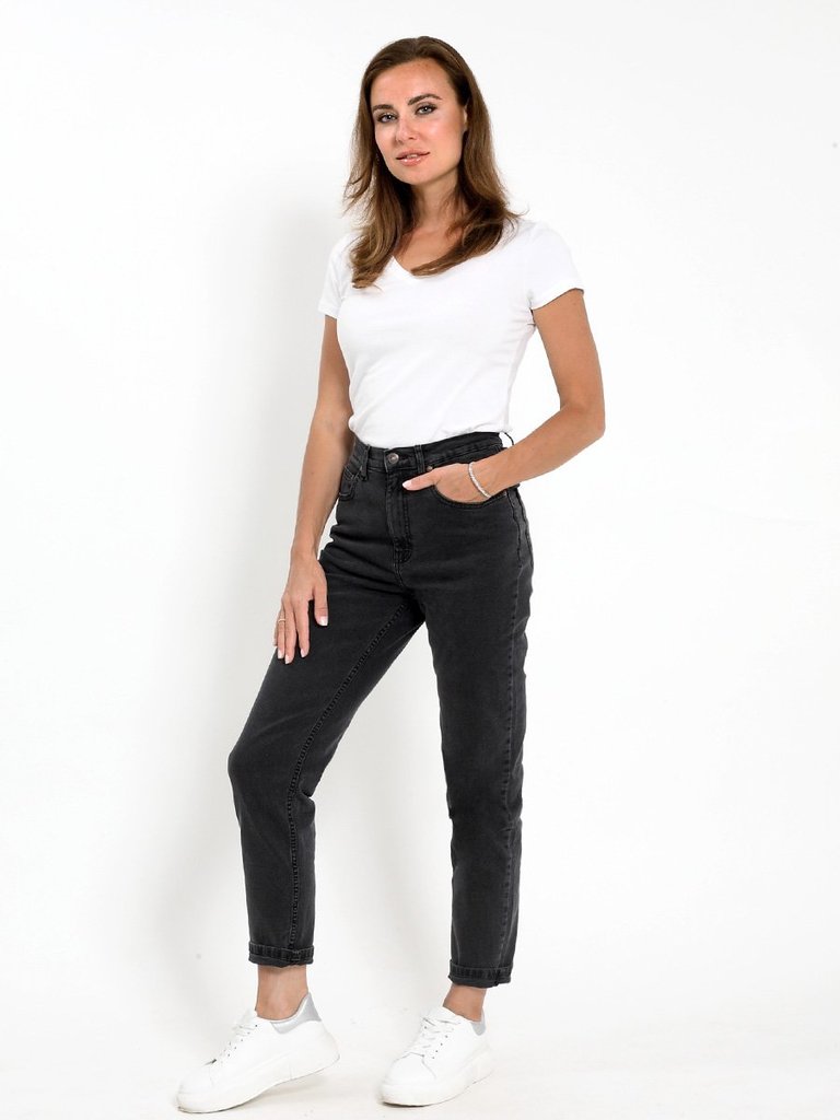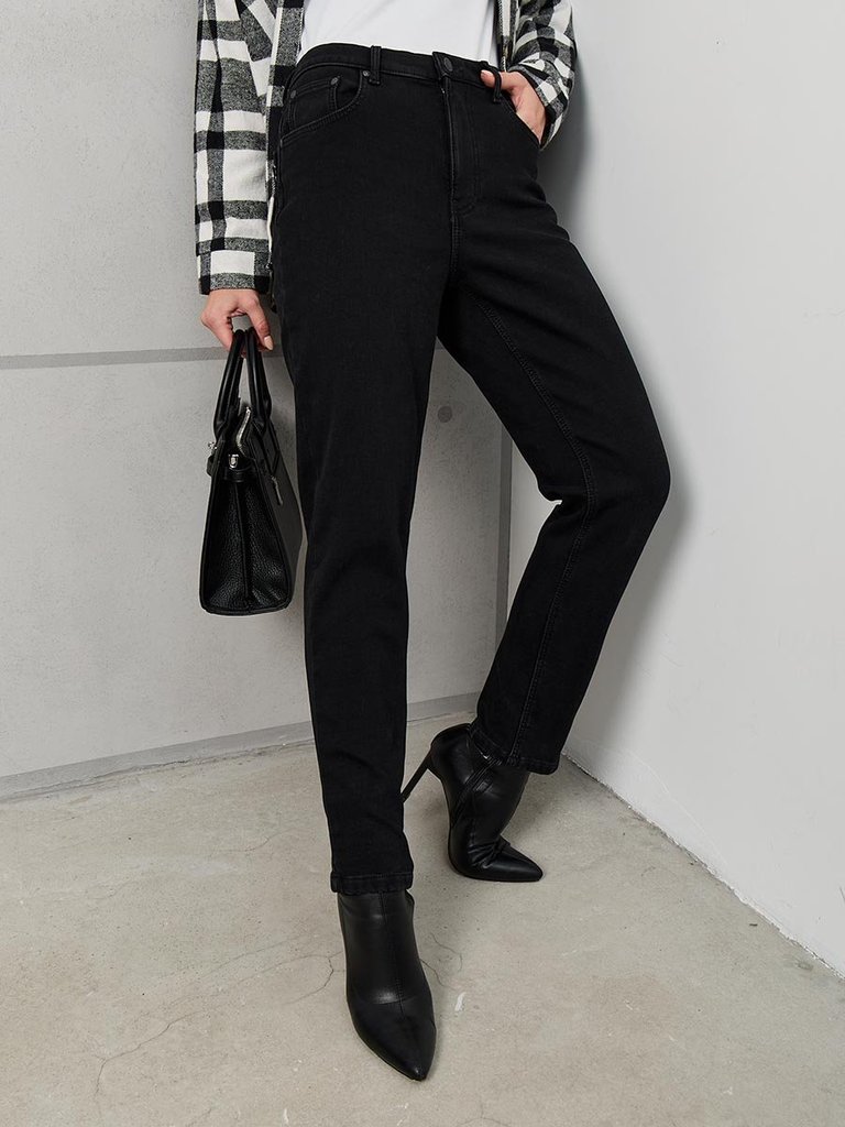 Цвет: стирка темная Состав: 73%хлопок, 22%полиэстер, 3%вискоза, 2%эластан/100%полиэстер Материал: Black denim M0075T-9-S str. Вес материала: 12 Фит: Mom fit Талия спереди: высокая Талия сзади: высокая... Показать описание Ширина колена: 20,5см Ширина низа: 16см ID: 253029 Описание Почувствуйте уют и стиль 90-х! Эти джинсы - идеальное решение для холодного сезона. Модель Mom Fit с высокой талией подчеркивает фигуру, а мягкая  флисовая подкладка дарит невероятное ощущение тепла и комфорта каждый день. Свободные в бедрах и плавно зауженные к низу, они создают современный силуэт, который идет практически всем.                                                          Благодаря специальной технологии, к джинсовой ткани с эффектом стрейч прикреплена флисовая подкладка. Флис - это синтетический материал, известный своими превосходными теплоизоляционными свойствами. Он создает множество микроскопических воздушных карманов, которые удерживают тепло близко к телу, но при этом материал "дышит". Это делает джинсы гораздо теплее обычных, но не такими громоздкими, как утепленные зимние штаны. Джинсы выполнены из качественной слабоэластичной ткани Denim Comfort Stretch, которая не сковывает движений и хорошо сохраняет форму. Классическая пятикарманная модель с застежкой на молнию и строгая темная стирка   - завершают аутентичный образ.                                                    Идеальный выбор для женщин, которые ценят комфорт, не хотят мерзнуть зимой и следят за модными трендами. Они подойдут для повседневной носки, прогулок, встреч с друзьями и создания модных образов в стиле ретро. Рекомендации по уходу * * * * * Стирать в стиральной машине при температуре 30° Не использовать отбеливатель Ручная стирка при температуре 30° Гладить при минимальной температуре Химчистка недопустима