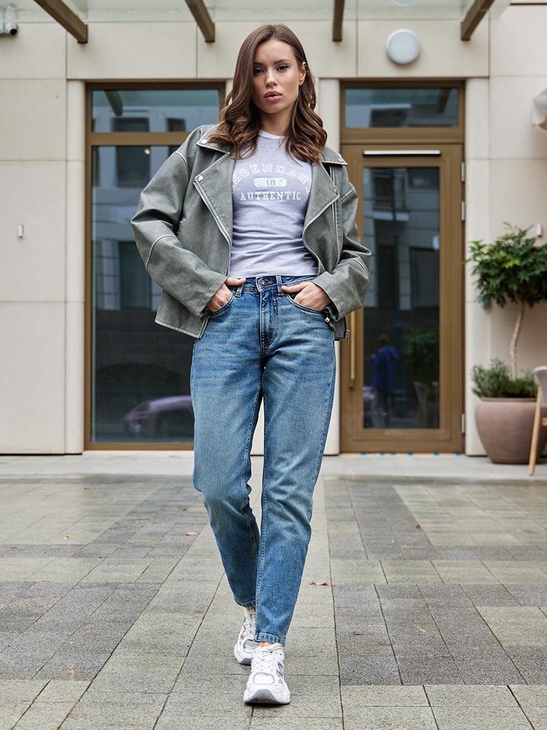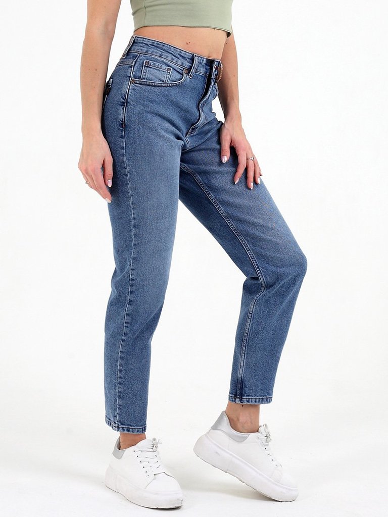 Цвет: стирка светлая Состав: 99%Хлопок, 1%Эластан Материал: Blue denim 007 str. Вес материала: 12.1 Фит: Mom fit Талия спереди: высокая Талия сзади: высокая Ширина колена: 21.5см Ширина низа: 16см ID:... Показать описание 133524 Описание Женские модные джинсы с пятью карманами. Посадка Mom fit (высокая талия), свободные в бедре и зауженные к низу, укороченной длины.  Застежка на молнию. Выполнены из слабоэластичной ткани denim comfort stretch. Светлая  стирка с потёртостями спереди и сзади. Параметры указаны для размера 28. Длина внутреннего шва - 72 см. Рекомендации по уходу * * * * * Стирать в стиральной машине при температуре 30° Не использовать отбеливатель Ручная стирка при температуре 30° Гладить при минимальной температуре Химчистка недопустима