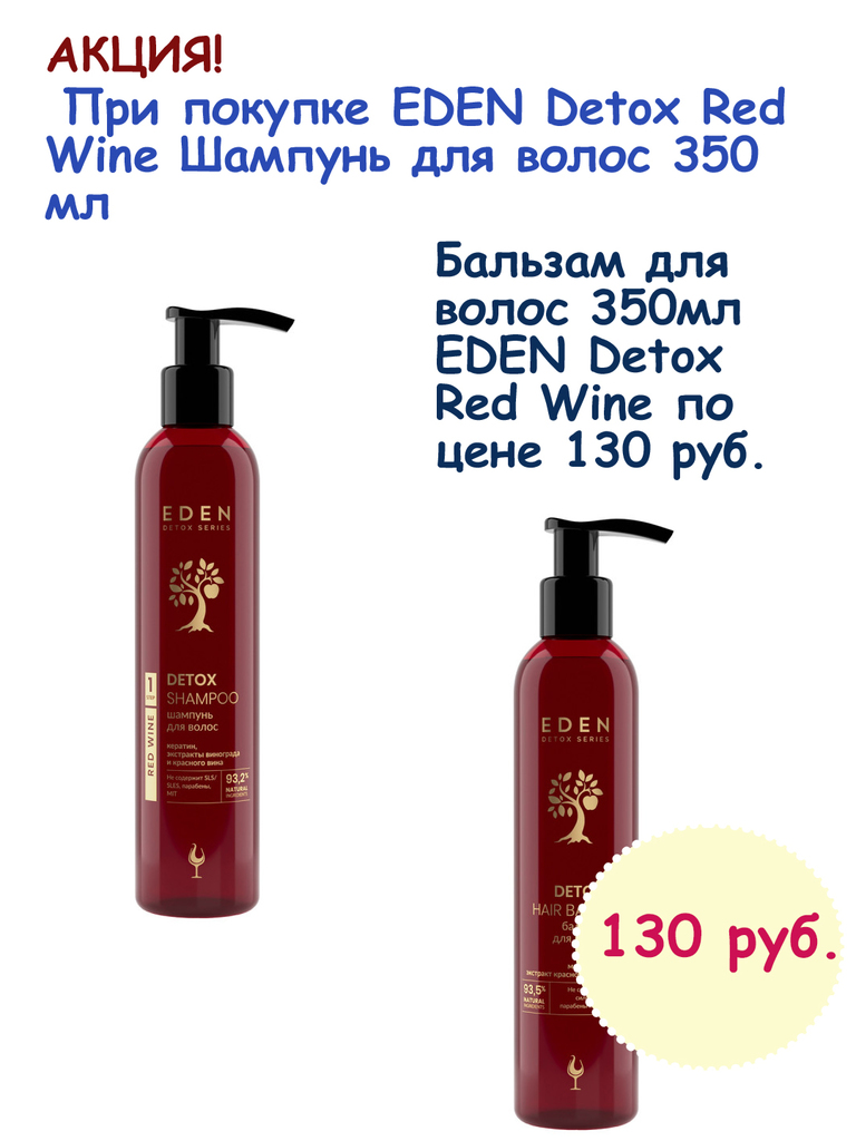 КОМПЛЕКТ EDEN Detox Red Wine Шампунь для волос 350мл+ EDEN Detox Red Wine Бальзам для волос 350млВопросы по товару