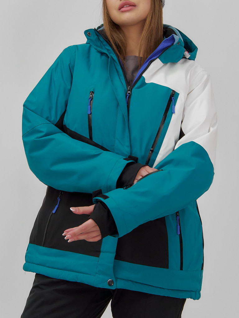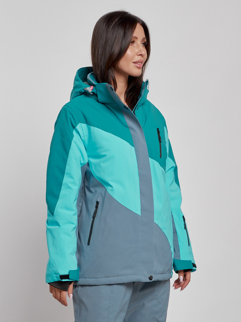 Горнолыжная куртка женская зимняя большого размера бирюзового цвета 3963BrВопросы по товару