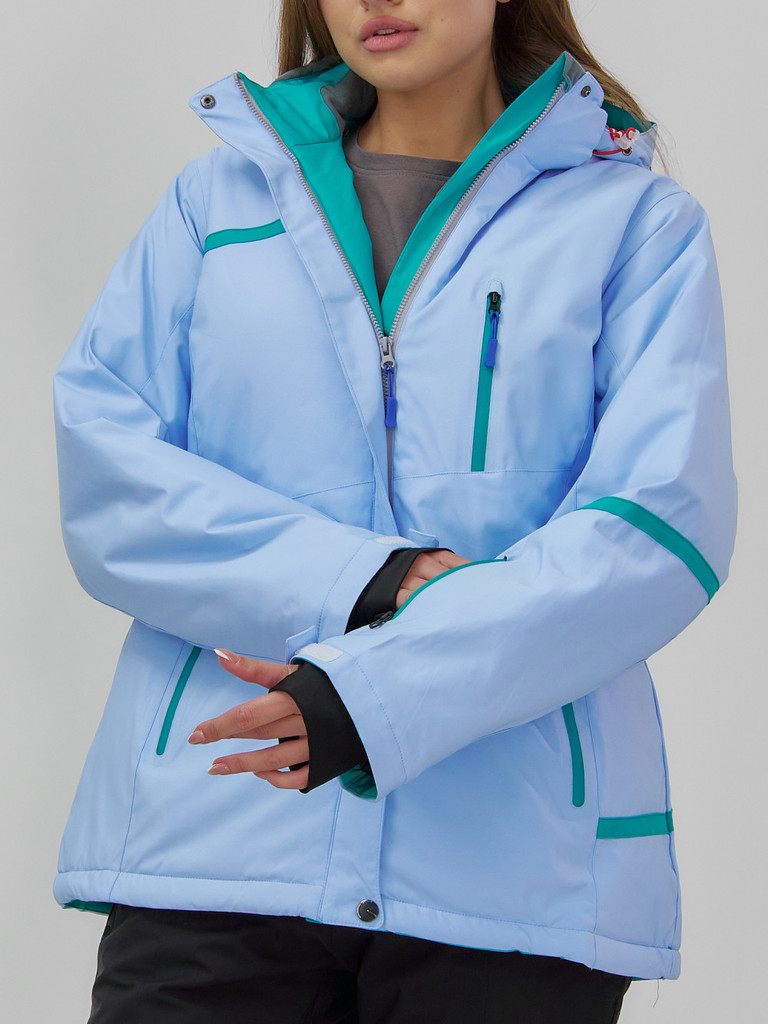 Горнолыжная куртка женская зимняя голубого цвета 16_1GlВопросы по товару