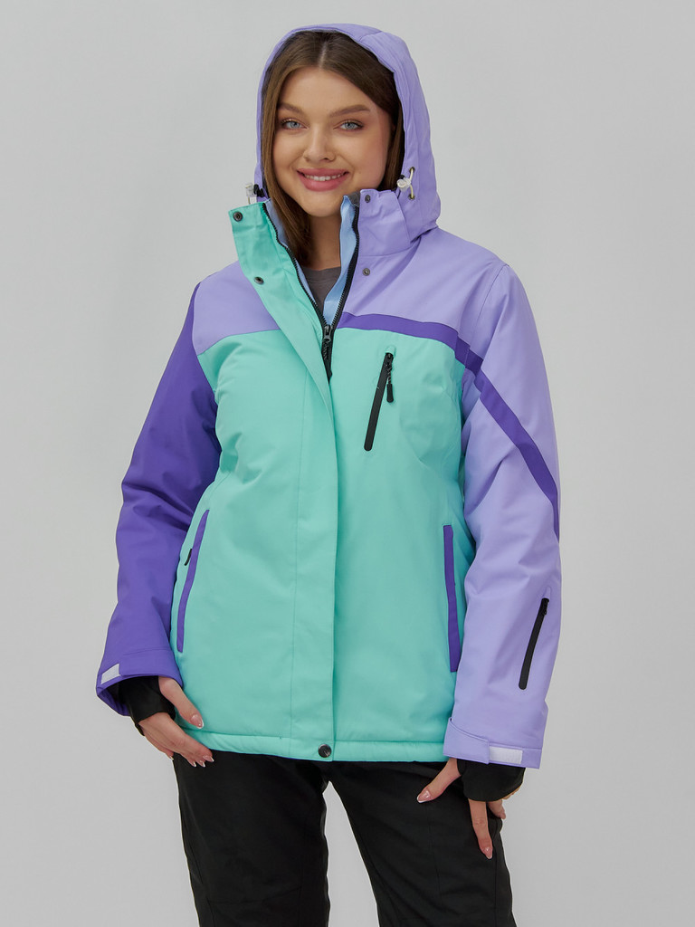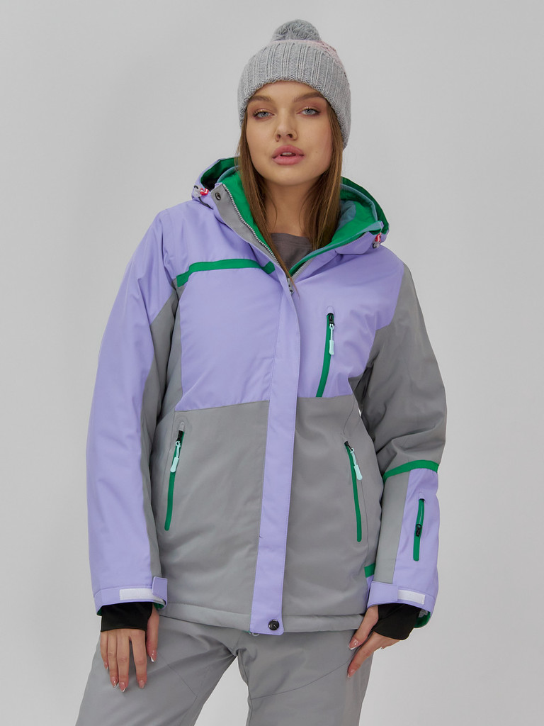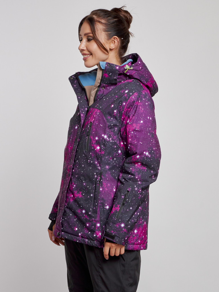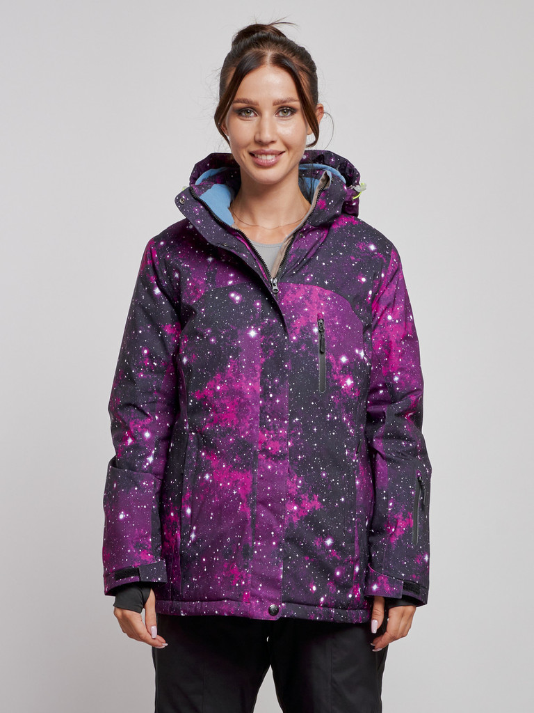 Горнолыжная куртка женская зимняя большого размера фиолетового цвета 3382FВопросы по товару