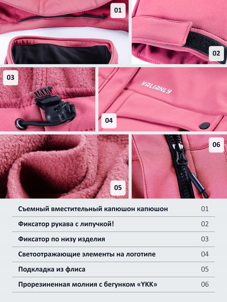 Спортивная женская ветровка с капюшоном: стиль, технологии и комфорт в каждой детали! Эта женская ветровка является результатом коллаборации брендов MTFORCE и VALIANLY, объединяющих свои усилия для со... Показать описаниездания стильной и функциональной одежды. Эта ветровка — идеальный выбор для активных девушек, которые ценят современный дизайн, защиту от непогоды и свободу движений. Созданная из высокотехнологичных материалов, она станет вашим надежным спутником в городе, на прогулках и даже в легких походах. Технологии, которые работают на вас: - Материал: Softshell с мембранными компонентами, полиэстером и тефлоновым покрытием (95% полиэстер, 5% спандекс). Сочетает легкость, эластичность и прочность. - Водонепроницаемость 10 000 мм и ветроустойчивость 8000 мм — защита от дождя, снега и порывистого ветра. - Подкладка из флиса (100% полиэстер) с начесом: сохраняет тепло при температуре от 0°C до +15°C, гипоаллергенна и приятна к телу. - Утягивающий полуприлегающий крой подчеркивает фигуру, не ограничивая движения. Дизайн для уверенных в себе: - Современный уличный стиль с элементами трендов весны-лета 2025: минималистичные логотипы, надписи и светоотражающие элементы для безопасности в темное время суток. - 4 классических и ярких цветов на выбор: черный, желтый, синий, темно-серый, розовый. - Съемный капюшон с регулировкой, прорезные карманы на молнии YKK (бренд премиальной фурнитуры), фиксаторы по низу и на рукавах. - Универсальная длина до бедра и свободный покрой подойдут для роста от 155 до 195 см. Практичность в каждой детали: - Двойная застежка (молния + кнопки + защитный клапан) обеспечивает плотное прилегание. - Стояче-отложной воротник защищает шею от ветра. - Прошитые внутренние швы увеличивают срок службы изделия. - Легкая упаковка в пакет — удобно брать с собой в поездки. Для кого эта ветровка? - Для тех, кто ведет активный образ жизни и ищет стильную альтернативу объемным курткам. - Для любителей уличной моды, ценящих функциональность и лаконичный дизайн. - Для тех, кто хочет создать модный семейный образ (опция family look). Сделайте выбор в пользу бескомпромиссного качества! Ограниченная коллекция, трендовые расцветки и технологии, которые не подведут даже в экстремальных условиях. Не упустите шанс обновить гардероб — добавьте в корзину и станьте частью модной революции 2025 года уже сегодня! Ваш идеальный образ начинается с этой ветровки. бренд VALIANLY