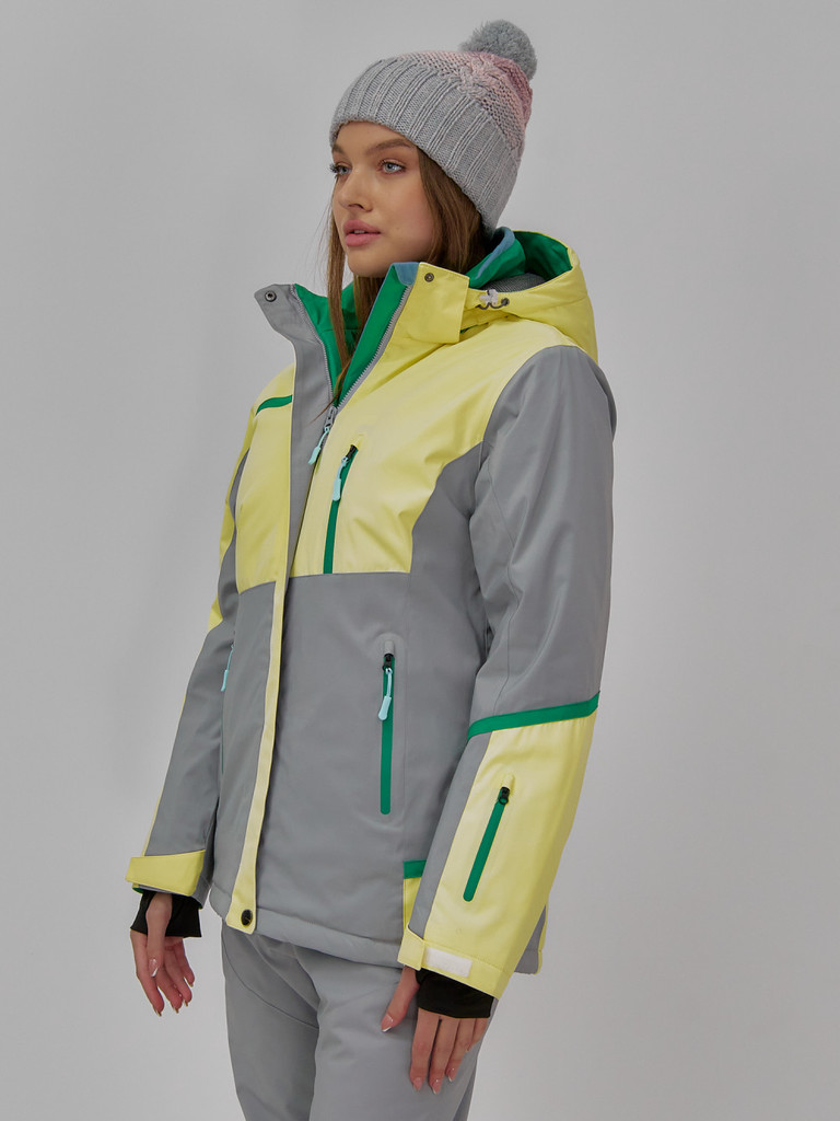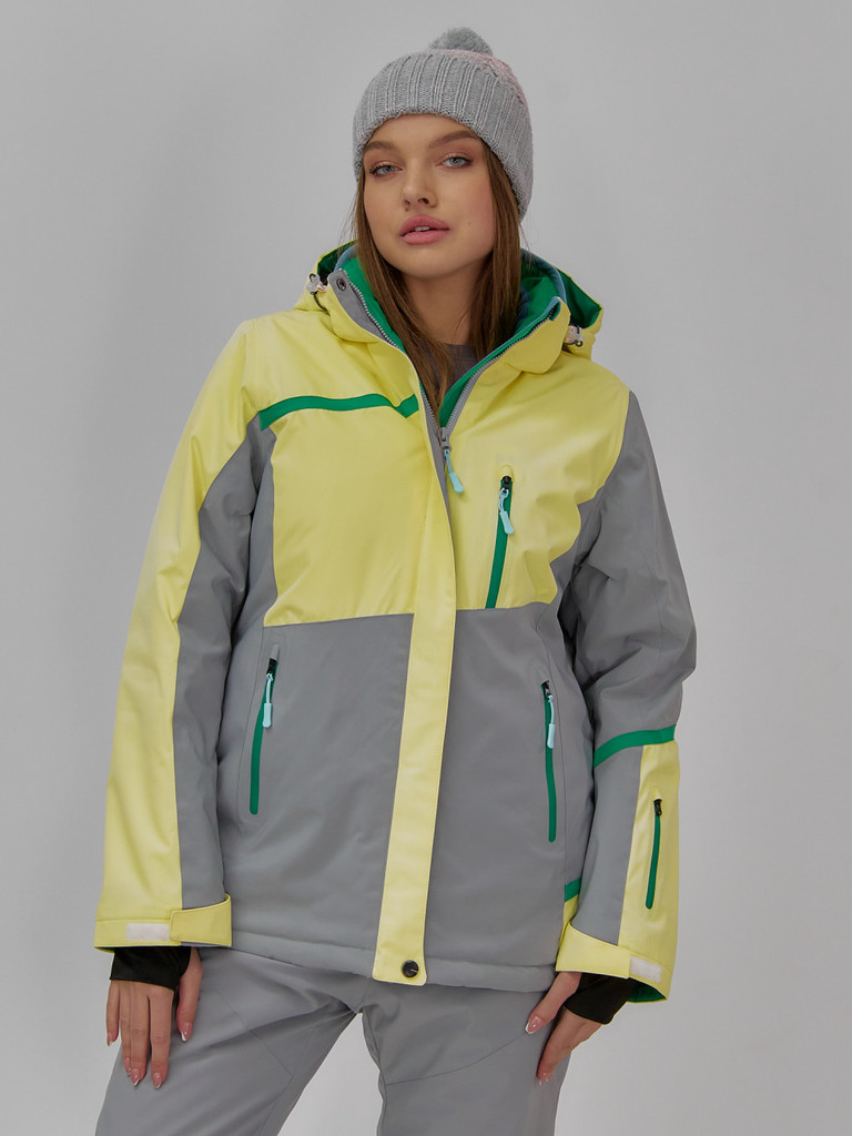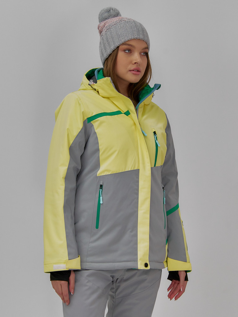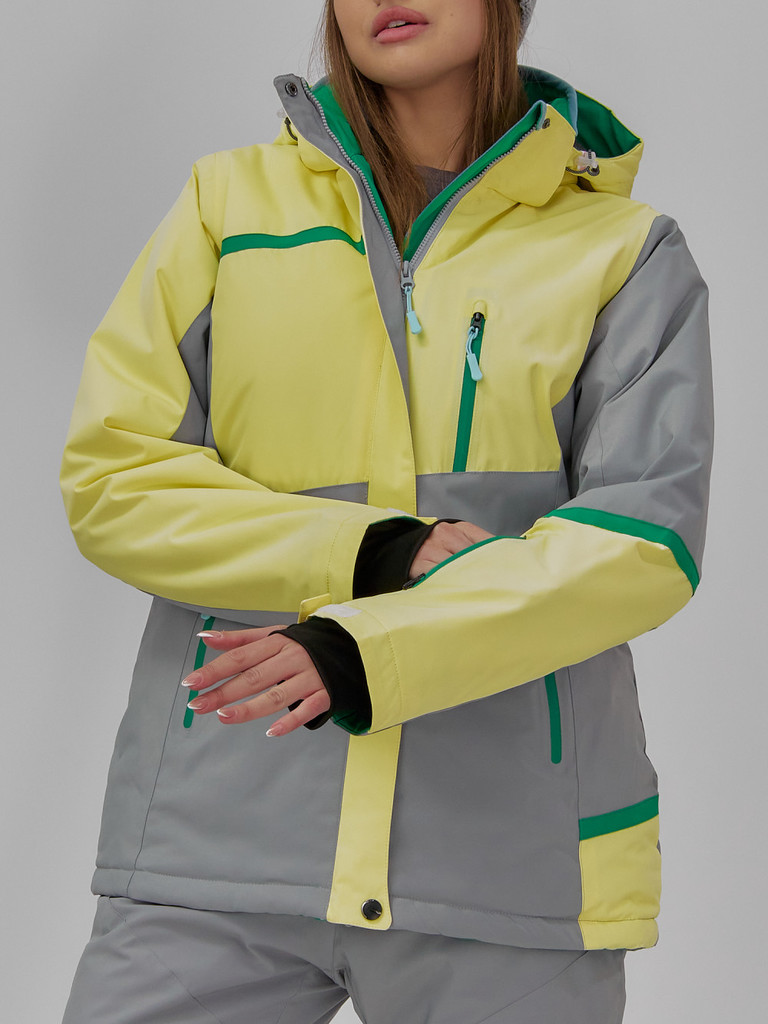 Гоннолыжная куртка женская зимняя желтого цвета 709JВопросы по товару