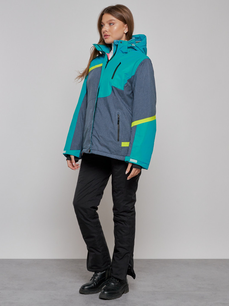 Горнолыжная куртка женская зимняя бирюзового цвета 707BrВопросы по товару
