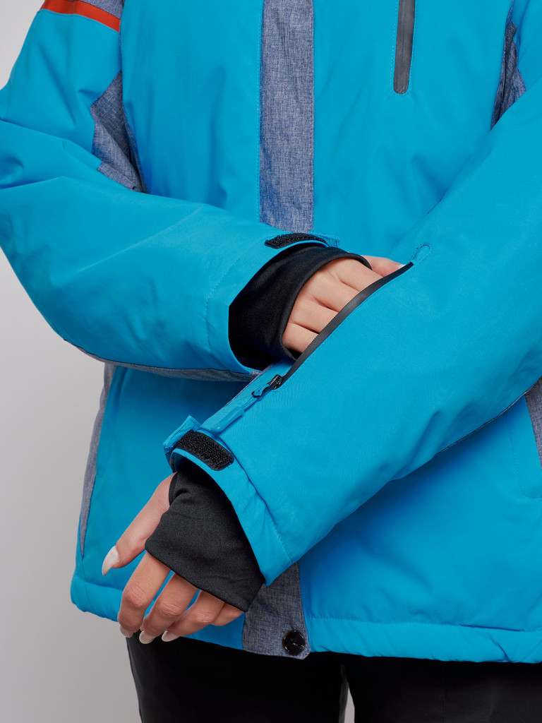 Горнолыжная куртка женская зимняя большого размера голубого цвета 7093GlВопросы по товару