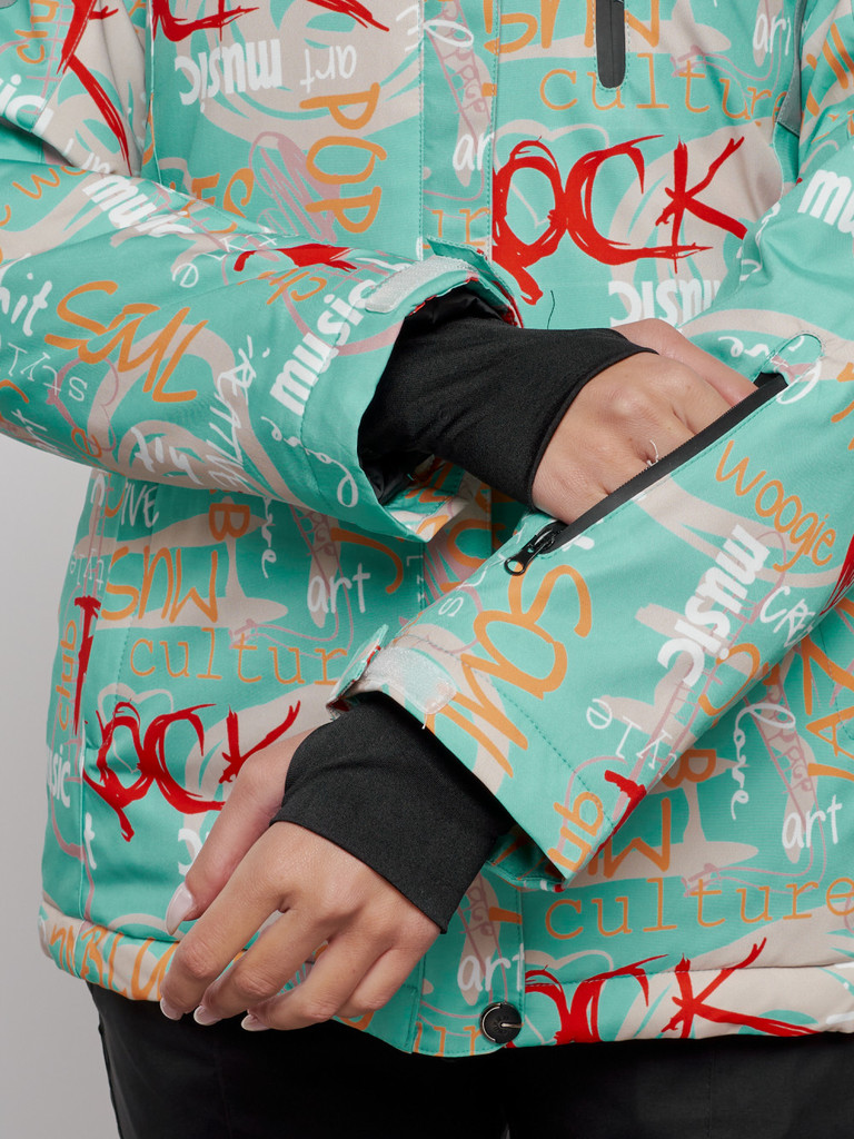Горнолыжная куртка женская зимняя большого размера бирюзового цвета 7093BrВопросы по товару