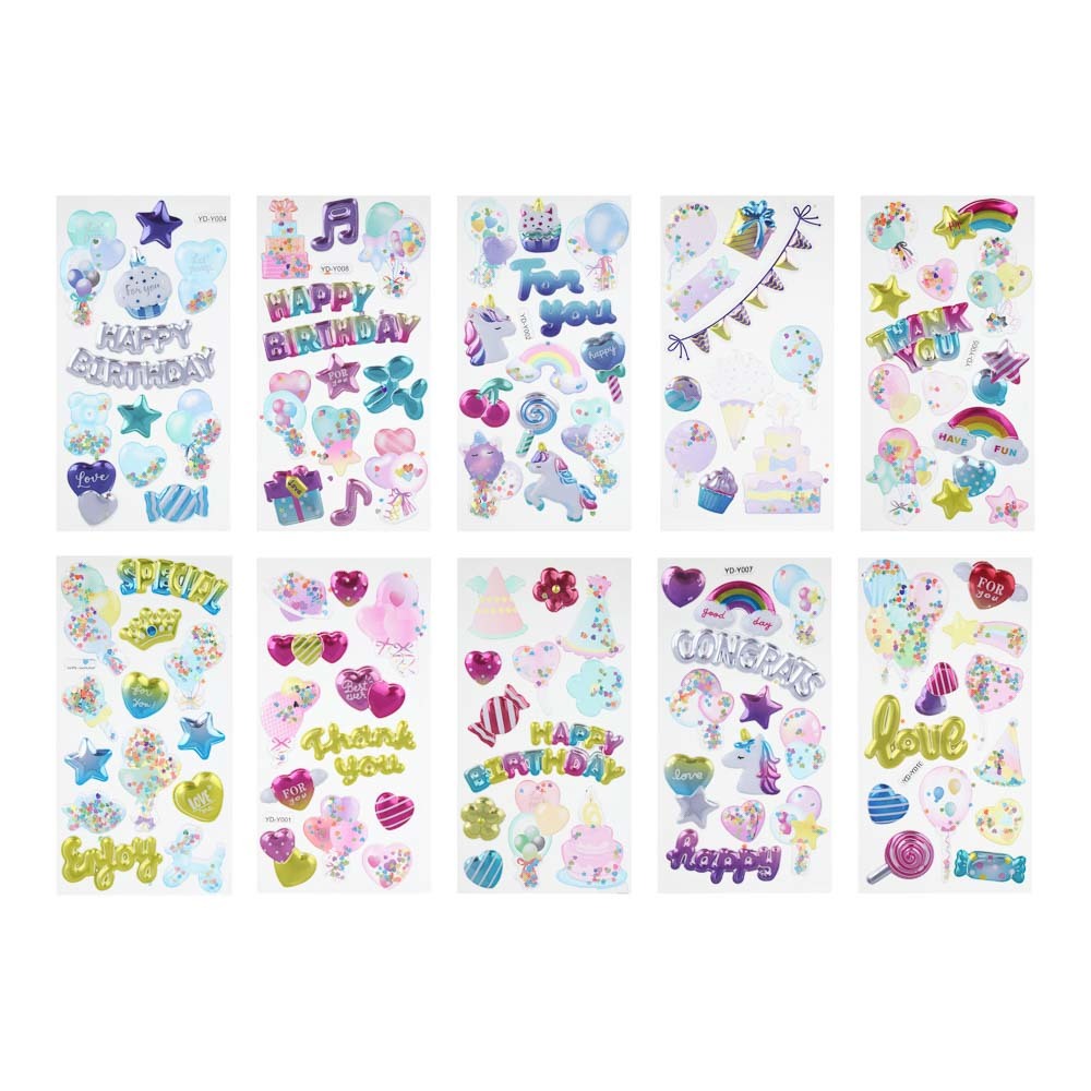 Fntastic Набор наклеек декоративных, 22x9,5 см, объемные перламутр., Happy Birthday, пластик, 10диз.