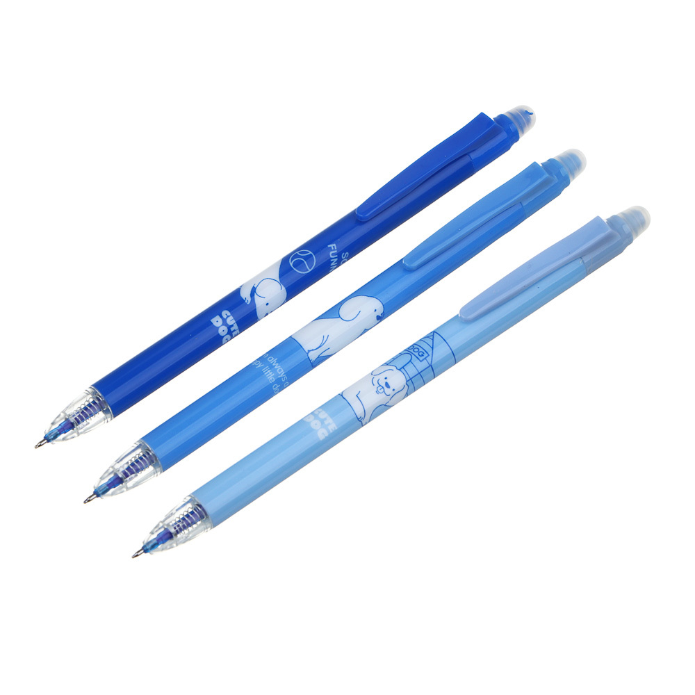 Авторучка гелевая "пиши-стирай" синяя, антискользящий корпус с принтом "Собачки", 3 дизайна