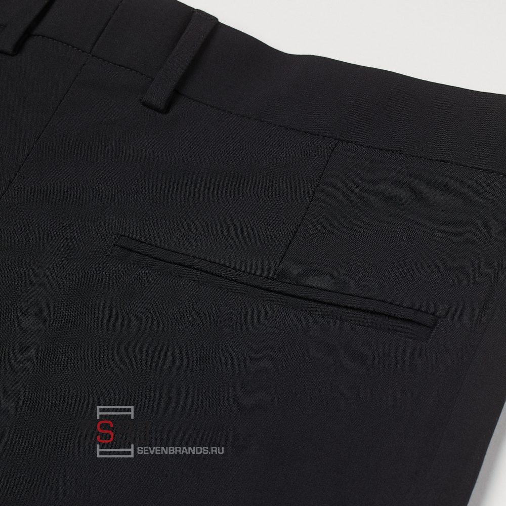 Костюмные брюки из смесовой вискозы. Скошенные боковые карманы и прорезные карманы сзади. Удлиненный пояс на потайном крючке. Застежка на молнию. На брюках заглажены складки. Атласные лампасы. Прямые ... Показать описаниеширокие штанины. Возможно повреждение ярлыка.