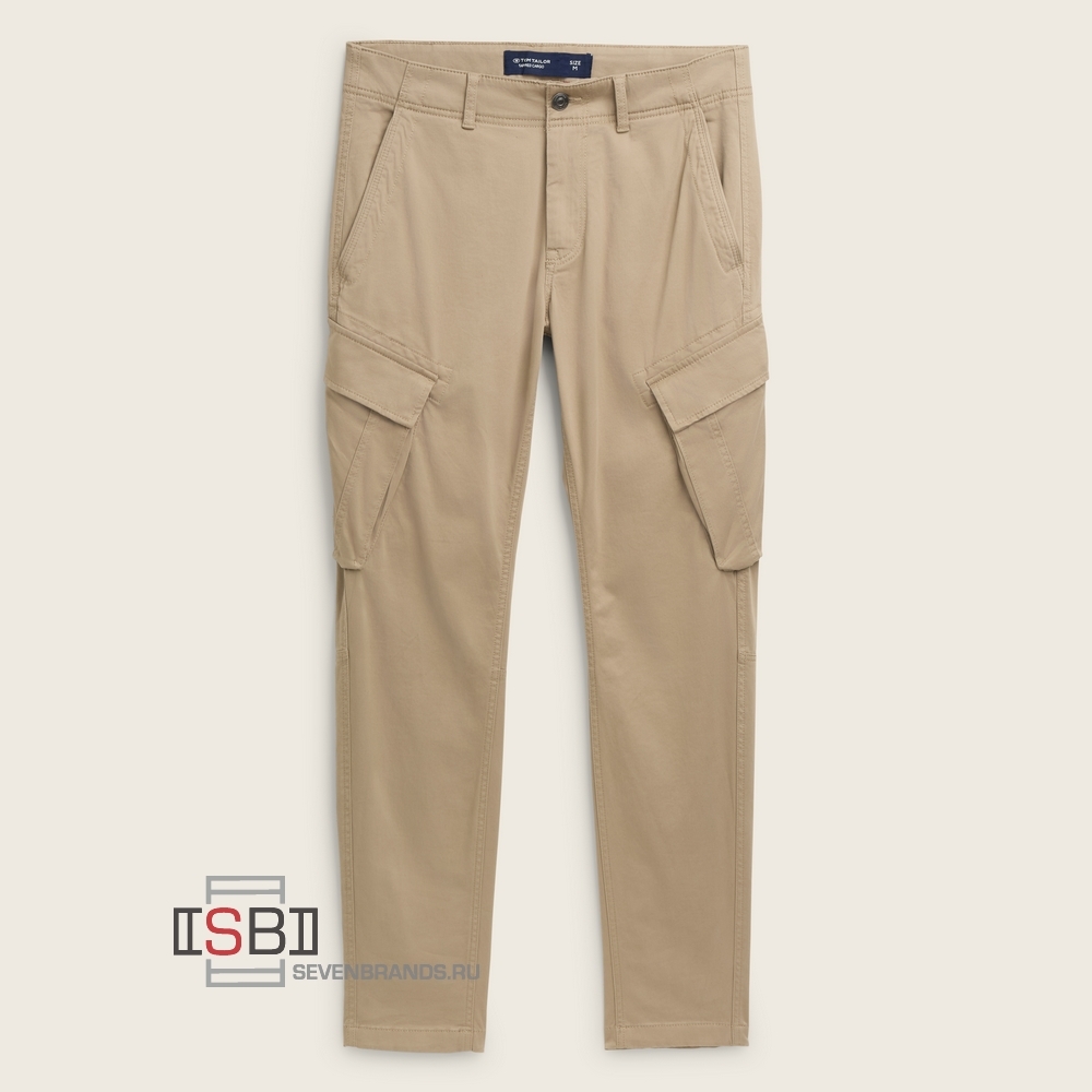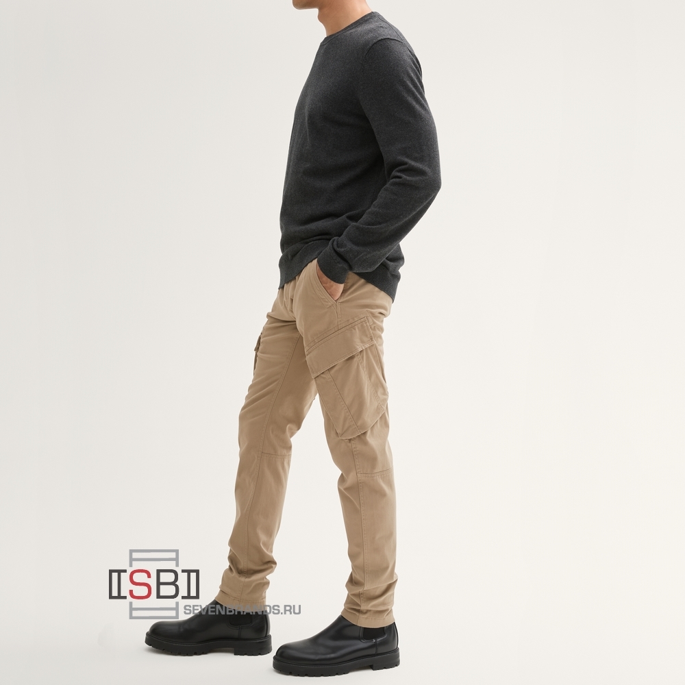 Брюки карго из хлопковой ткани. Диагональные передние карманы, два прорезных кармана сзади, карманы с клапанами на брючинах. Замеры по изделию: р.32/32  ОТ 86  ДИ  107 р.38/30  ОТ 100  ДИ  105