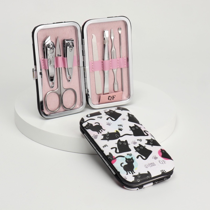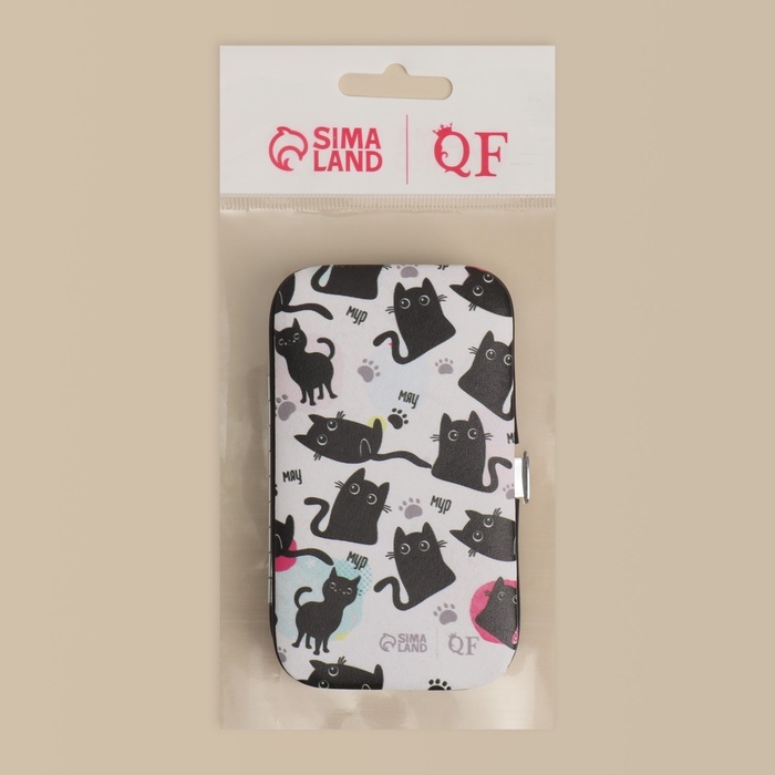 Набор маникюрный «Мур-мяу», 7 предметов, в футляре, чёрный, белыйВопросы по товару