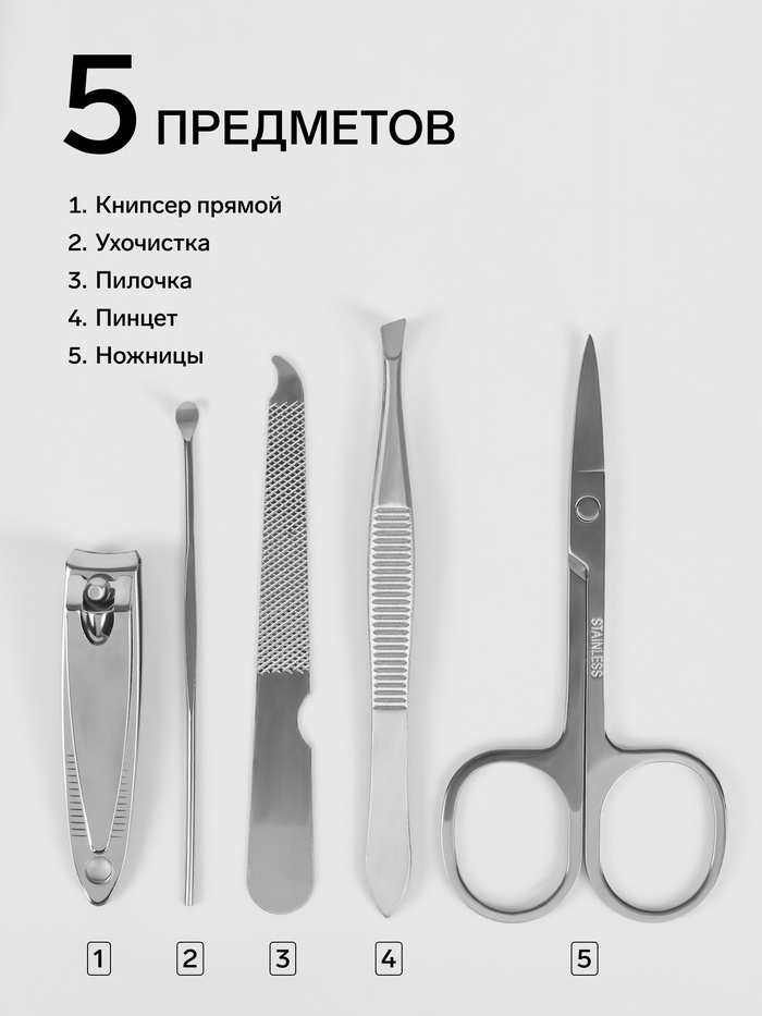Набор маникюрный, 5 предметов, в металлическом футляре, серебристыйВопросы по товару