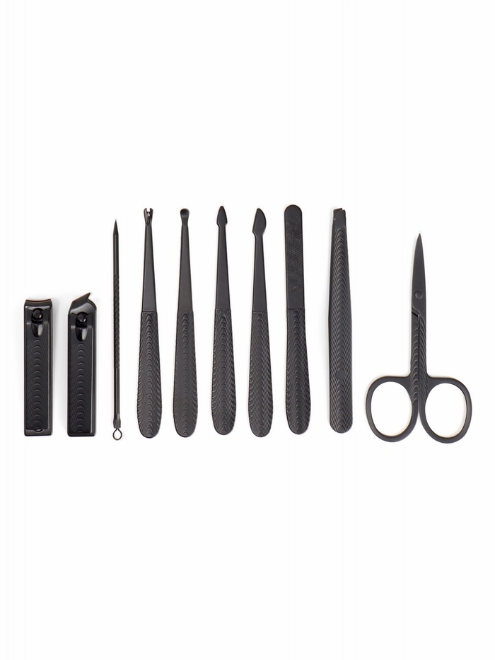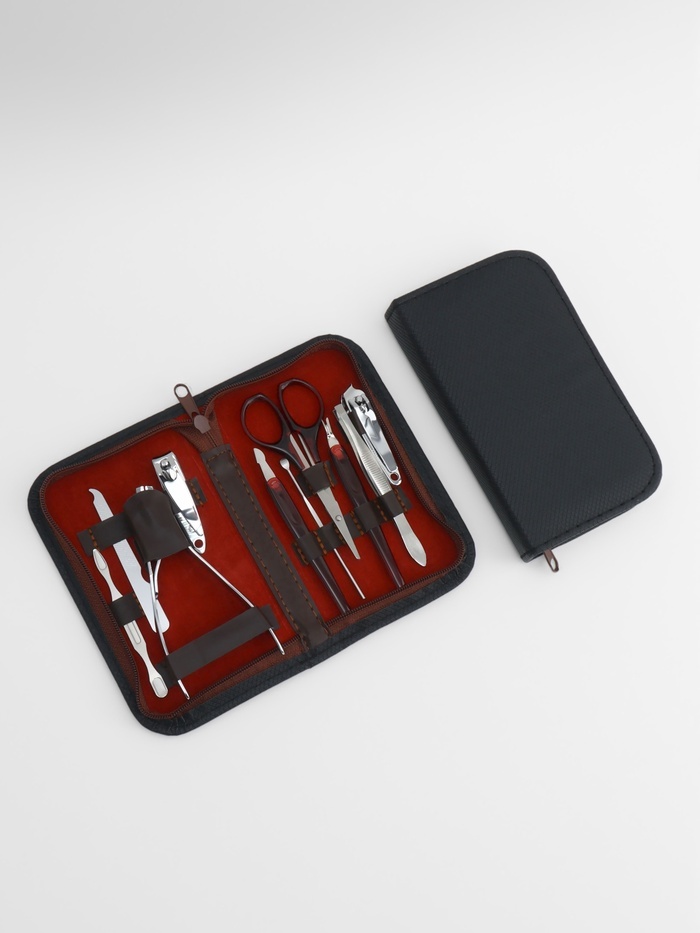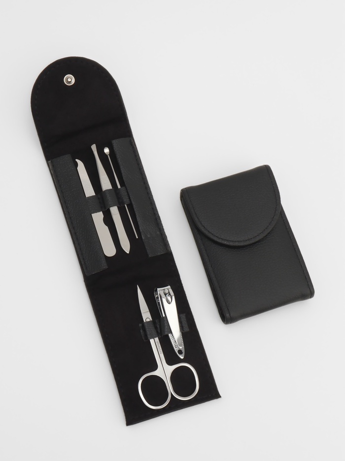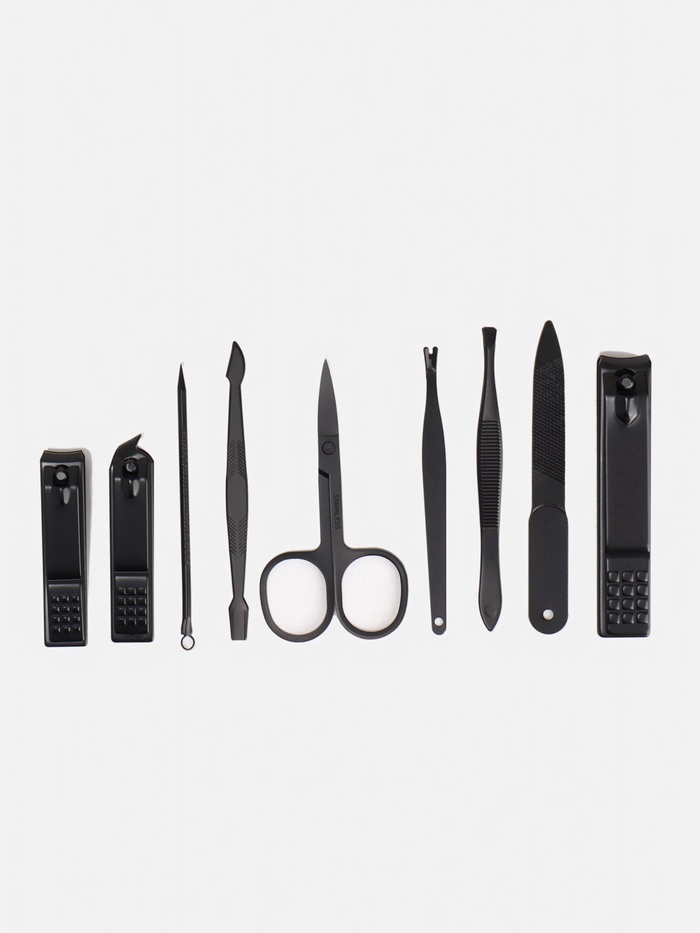 Маникюрный набор «BLACK» — это стильный и практичный выбор для тех, кто ценит функциональность и лаконичный дизайн. Девять инструментов из нержавеющей стали в чёрном футляре обеспечивают полный уход з... Показать описаниеа ногтями, руками и ногами. Подходит как для личного использования, так и в качестве подарка — универсально и надёжно. Особенности * Футляр из искусственной кожи с защёлкой защищает инструменты и сохраняет порядок. * Чёрный цвет придаёт набору строгий и современный внешний вид. * Подходит для мужчин и женщин — универсальный вариант для всей семьи. * Идеальный подарок маме, сестре, бабушке, дочке или подруге к любому случаю. Комфорт в каждой детали Этот маникюрный набор создан для тех, кто хочет видеть свои ногти ухоженными каждый день. Металлические инструменты легко поддаются очистке и прослужат долго. Футляр удобно хранить дома или брать с собой в поездку. Простой, но элегантный дизайн делает его практичным аксессуаром для повседневного ухода и самой строгой эстетики. Комплектация В наборе: * Книпсер прямой * Книпсер скошенный * Косметологическая игла * Пушер * Ножницы * Триммер * Пинцет * Пилочка * Книпсер прямой