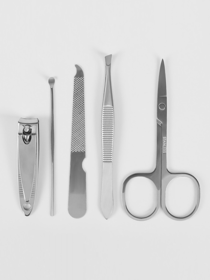 Оптимальный набор принадлежностей, стильный дизайн, компактность и универсальность — всё это о маникюрном наборе. Удобные аксессуары для создания маникюра пригодятся не только дома, но и когда вы реши... Показать описаниете совершить поездку. В отпуске, командировке, поездке загород и любом другом путешествии под рукой у вас всегда окажутся принадлежности, которыми вы быстро и без особых усилий приведёте ногти в порядок. Комплектация В наборе: * Книпсер прямой * Книпсер скошенный * Пушер * Пилка * Пинцет * Ножницы