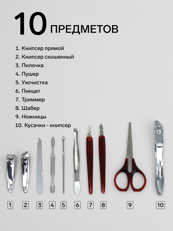 Набор маникюрный, 10 предметов, в футляре, серый, чёрныйВопросы по товару