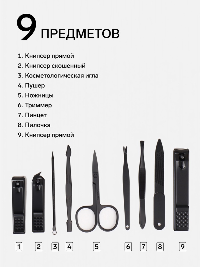 Набор маникюрный BLACK, 9 предметов, в футляре, чёрныйВопросы по товару