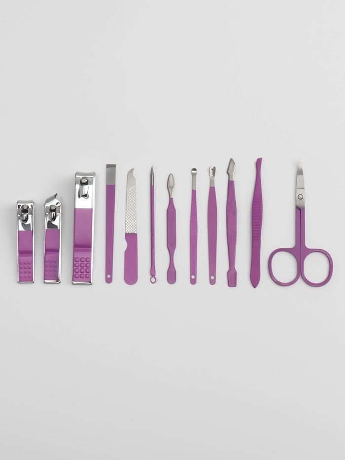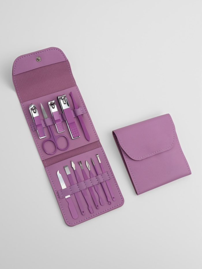 Набор маникюрный, 12 предметов, в футляре, сиреневыйВопросы по товару
