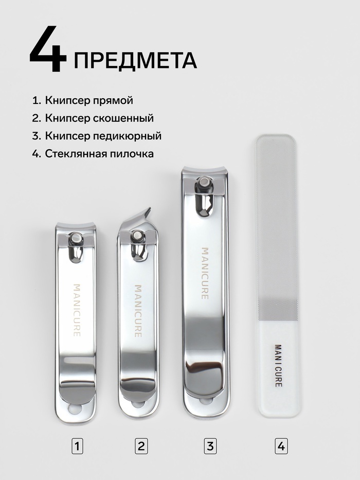 Набор маникюрный, 4 предмета, в раздвижном футляре, бежевыйВопросы по товару