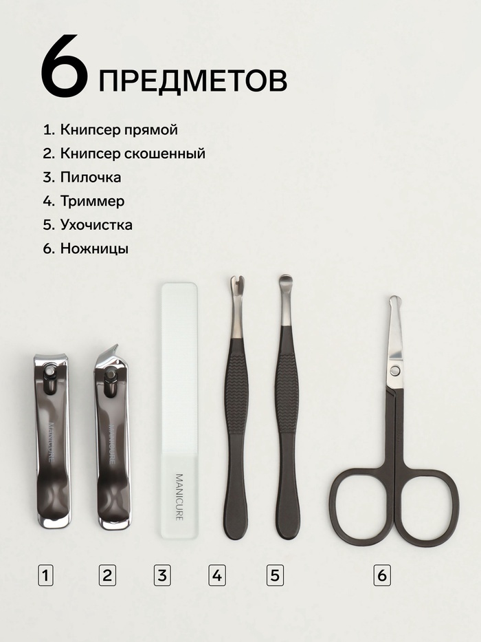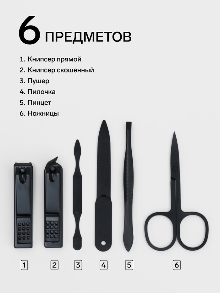 Набор маникюрный «Тренд», 6 предметов, в футляре, чёрныйВопросы по товару