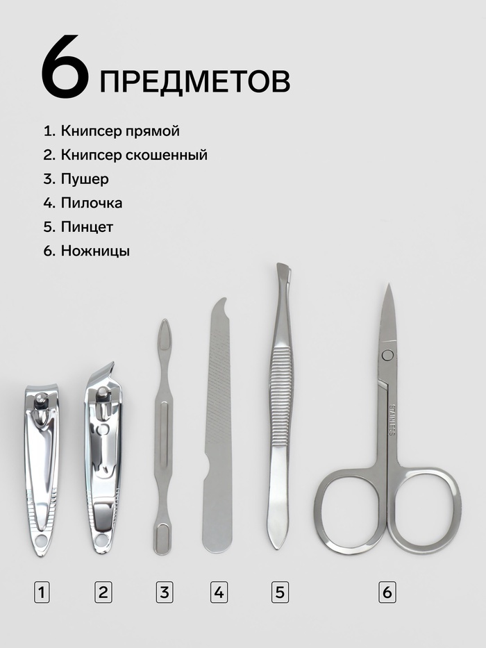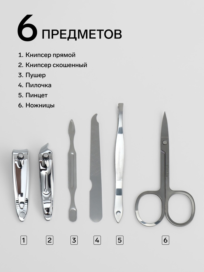 Набор маникюрный «С ЗАБОТОЙ», 6 предметов, в футляре, в PVC - коробке, серыйВопросы по товару