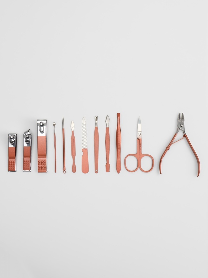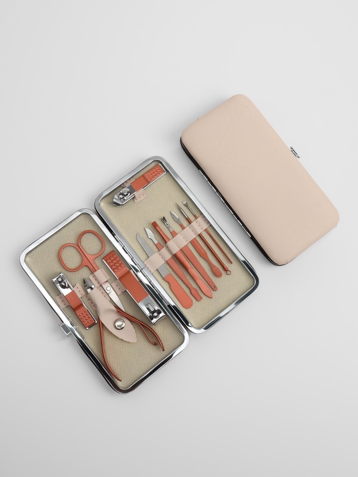 Набор маникюрный, 12 предметов, в футляре, бежевый, розовое золотоВопросы по товару