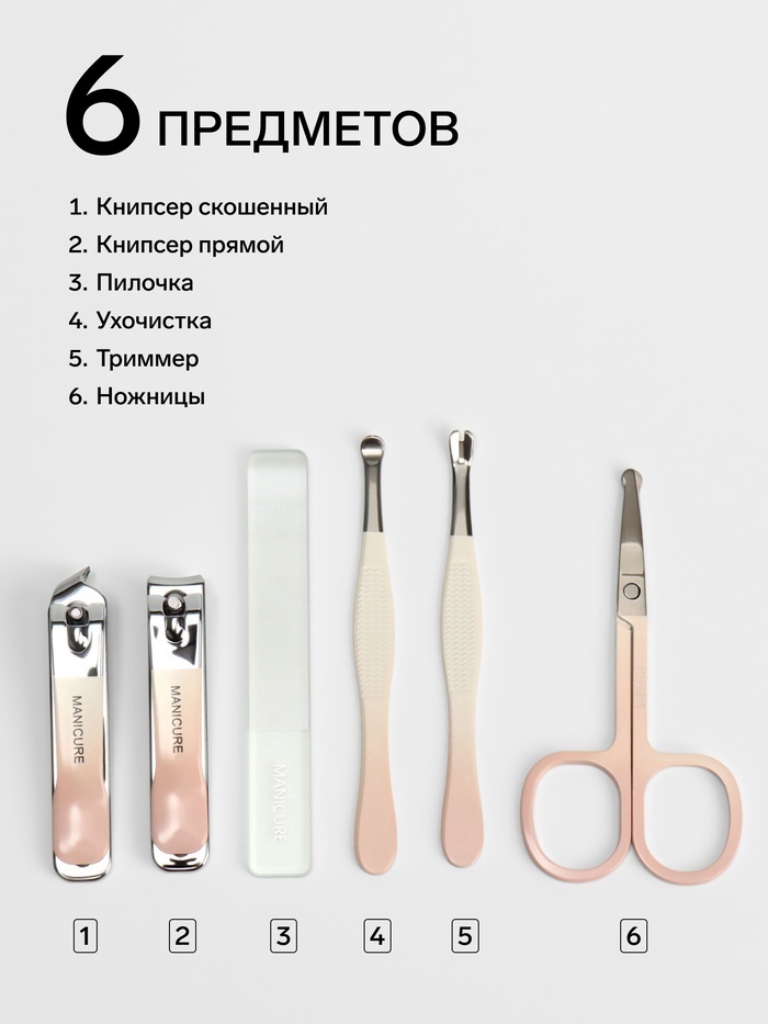 Набор маникюрный, 6 предметов, в футляре, бежевый, персиковыйВопросы по товару