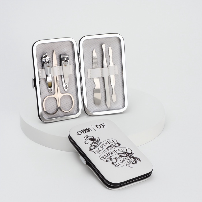 Набор маникюрный «Фортуна», 6 предметов, в футляре, чёрный, белыйВопросы по товару