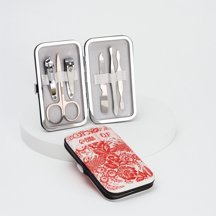 Набор маникюрный «Роспись», 6 предметов, в футляре, красный, белыйВопросы по товару