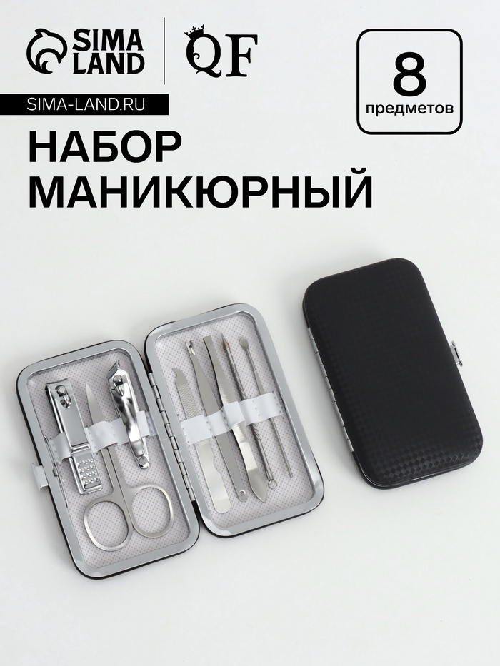 Маникюрный набор QF в серо-черном футляре — это 10 профессиональных инструментов для комплексного ухода за руками и ногтями. Стильный кейс с защелкой объединяет все необходимое в компактном и удобном ... Показать описаниеформате. Полная комплектация * 10 инструментов из нержавеющей стали: от кусачек и ножниц до пушера и триммера * Прочный футляр из искусственной кожи с надежной защелкой * Сдержанная двухцветная гамма без рисунков — универсальный дизайн Ключевые преимущества * Эргономичные ручки для комфортного использования * Компактный размер для хранения Идеальное решение для Ценителей практичных и стильных аксессуаров для ухода за собой. Набор QF одинаково подойдет для домашнего использования, поездок или в качестве презента. Все инструменты легко дезинфицируются и долго сохраняют рабочую остроту. Особенности использования Футляр надежно защищает инструменты от повреждений и потери. Серо-черная цветовая гамма выглядит современно и не маркая. В наборе собраны все необходимые приспособления для профессионального маникюра и педикюра в домашних условиях. Комплектация В наборе: * Книпсер прямой * Книпсер скошенный * Ухочистка * Косметологическая игла * Пушер * Пилка * Триммер * Шабер * Пинцет * Ножницы